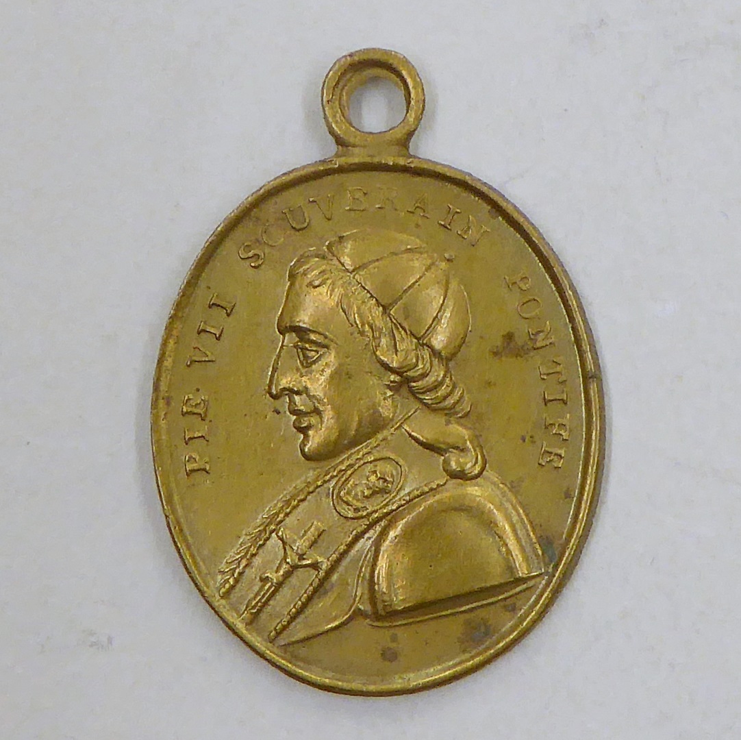 Pauspenning, ovaal, met Pius VII (1800-1823), kz. Christus aan het kruis