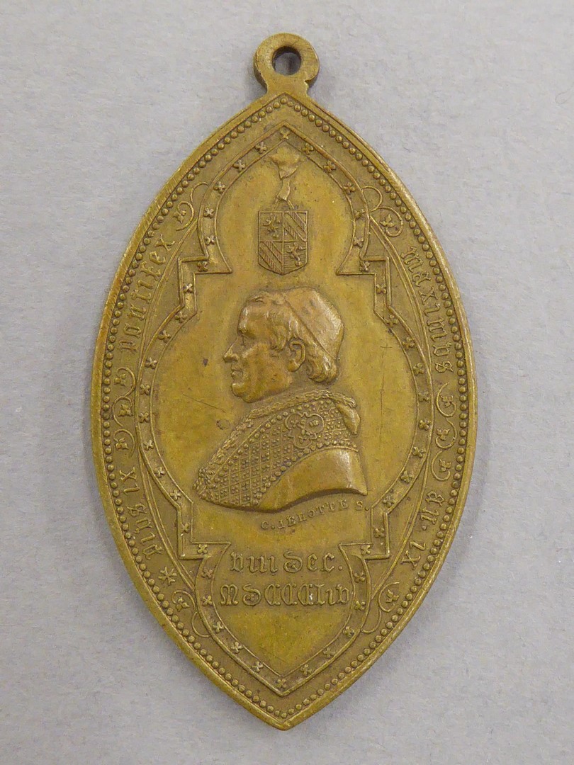 Pauspenning met Pius IX (1846-1878), kz. met "Christus concepta ora deo nobis c. lehotte"
