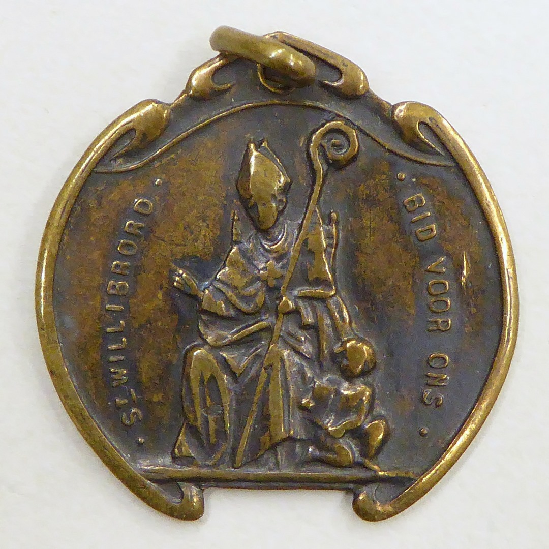 Devotiepenning met H. Willibrord bid voor ons, kz. blanco