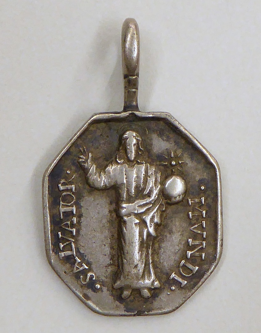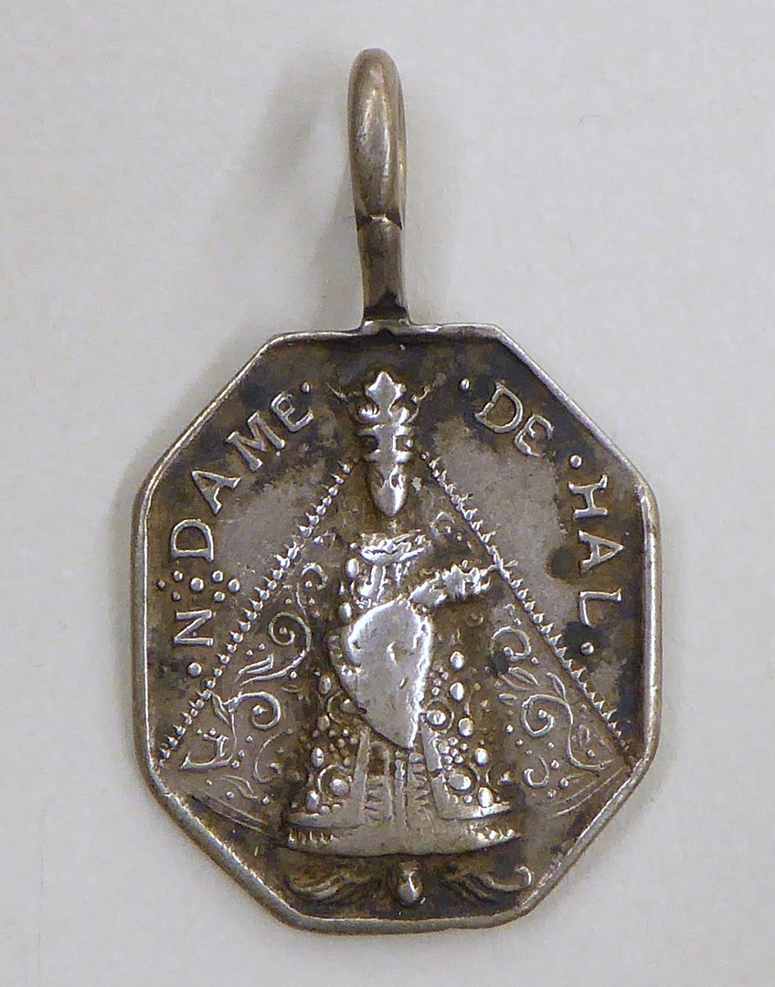 Devotiepenning, achtkantig, met O.L.V. van Hal, kz. Christus Salvator Mundi