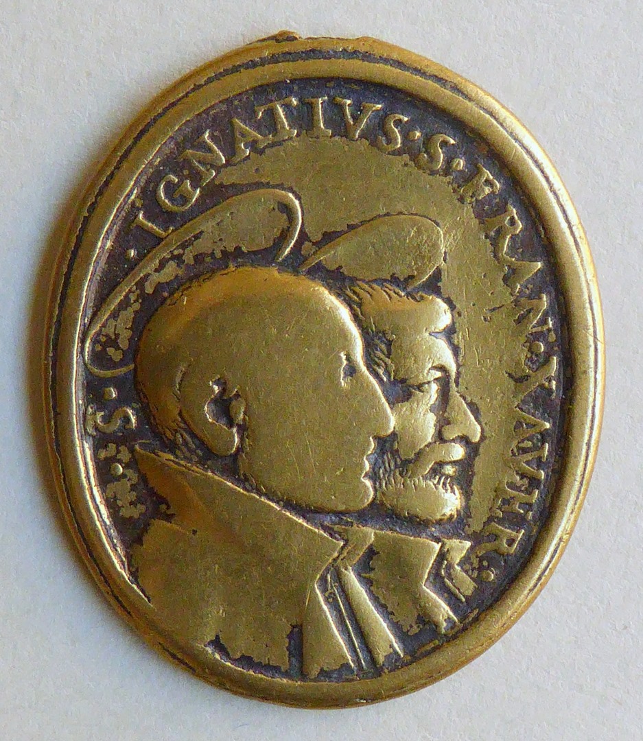 Devotiepenning, ovaal, met Franciscus en Ignatius, kz. Aloysius van Gonzaga