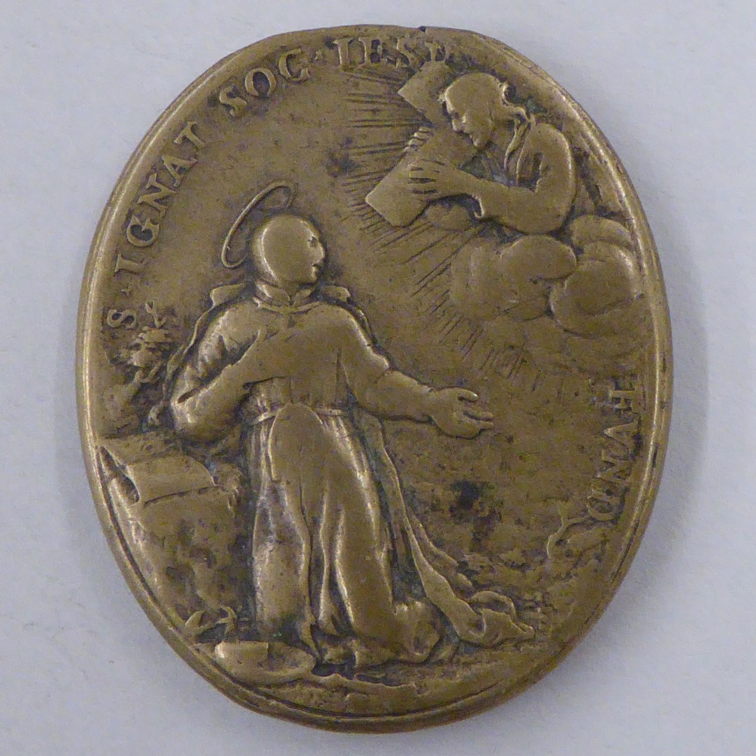 Devotiepenning, ovaal, met H. Ignatius, kz. H. Franciscus
