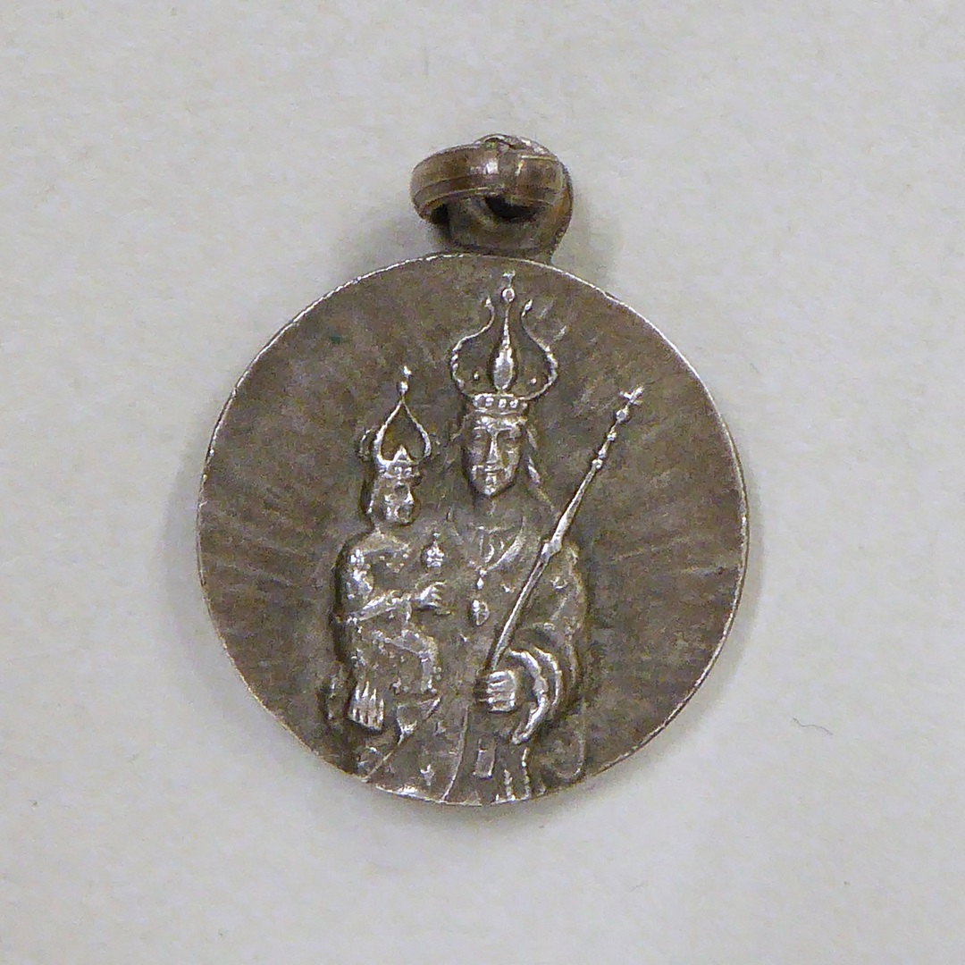 Devotiepenning met Maria met kind, kz. O.L.V. van Lachet, kerk
