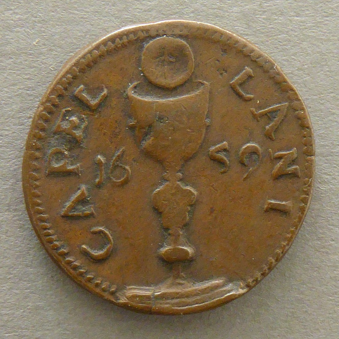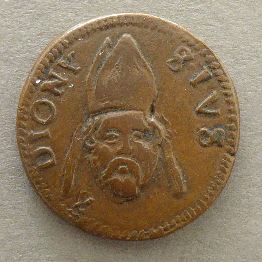 Penning St. Denis, Luik, met "Dionysius", kz. kelk en hostie, met "Cappelani"