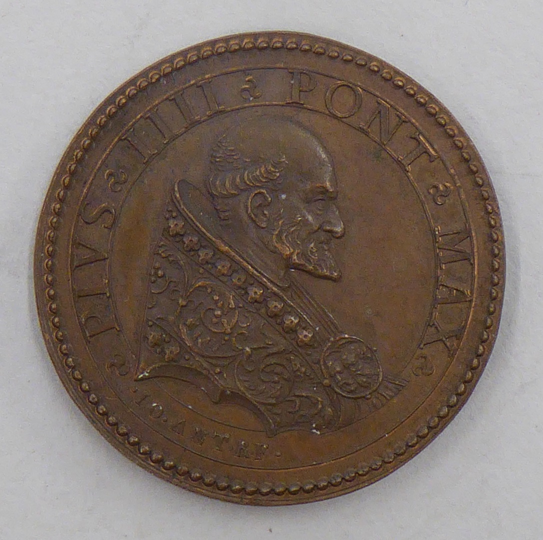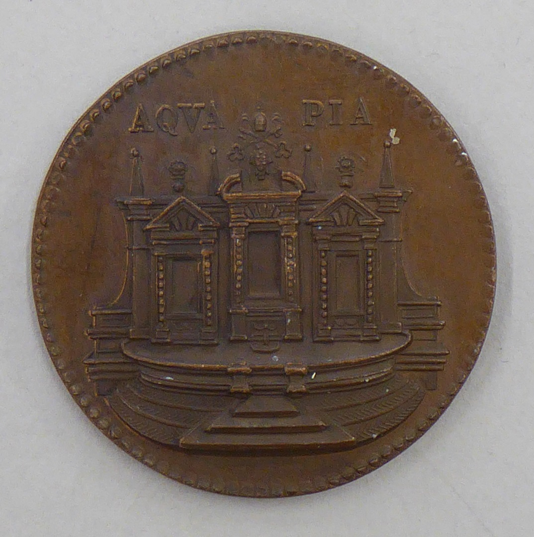 Pauspenning met portret paus Pius IV (1559-1565), kz. fontein met "Aqua Pia"