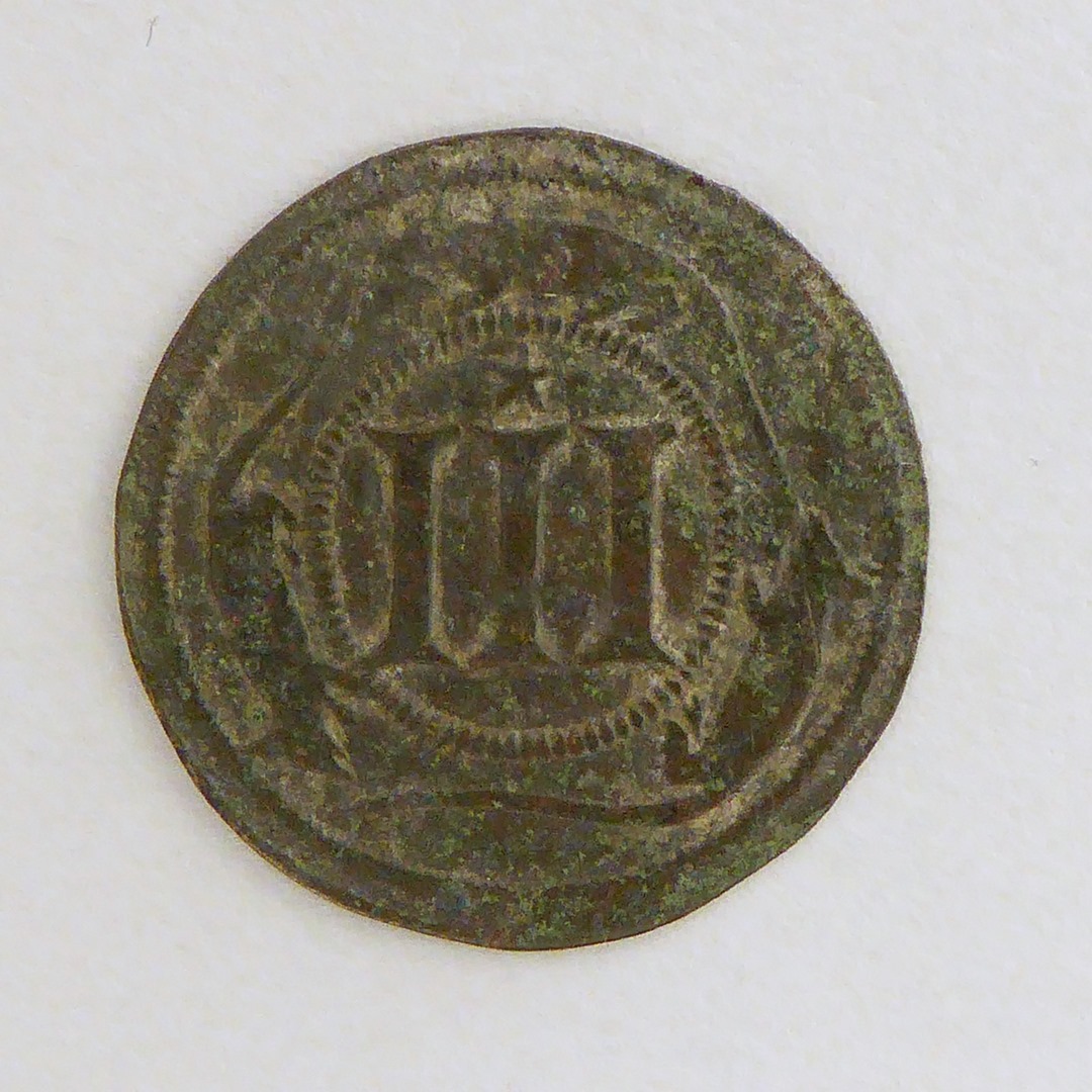 Armenpenning Atrecht met "Ecclesie atrebaten cap", kz. met "III"