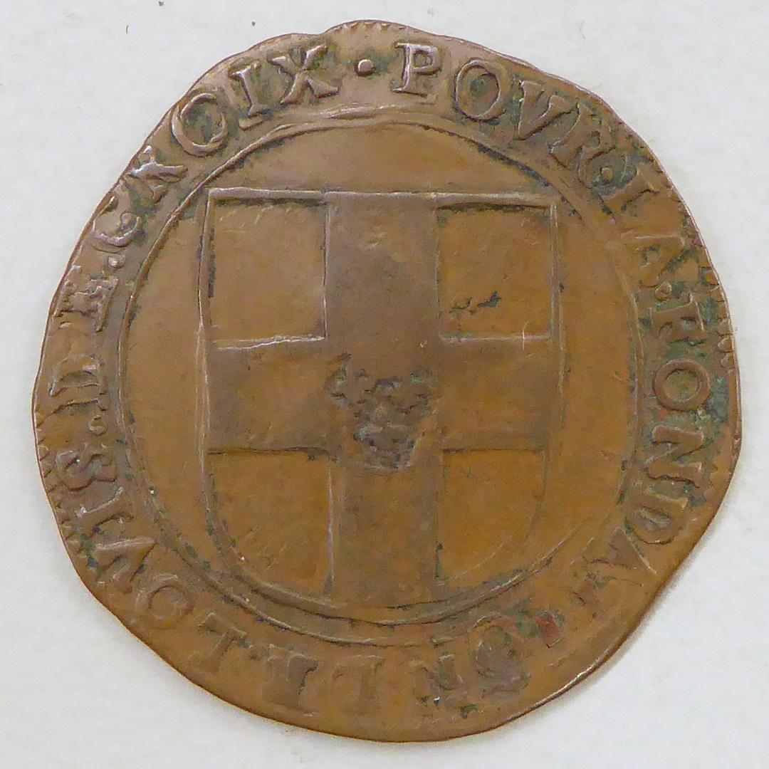 Penning met wapenschild met kruis en "Pour la ... Louis Decroix", kz. met "12 patar ... escuier ..."