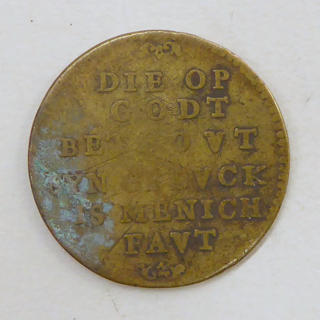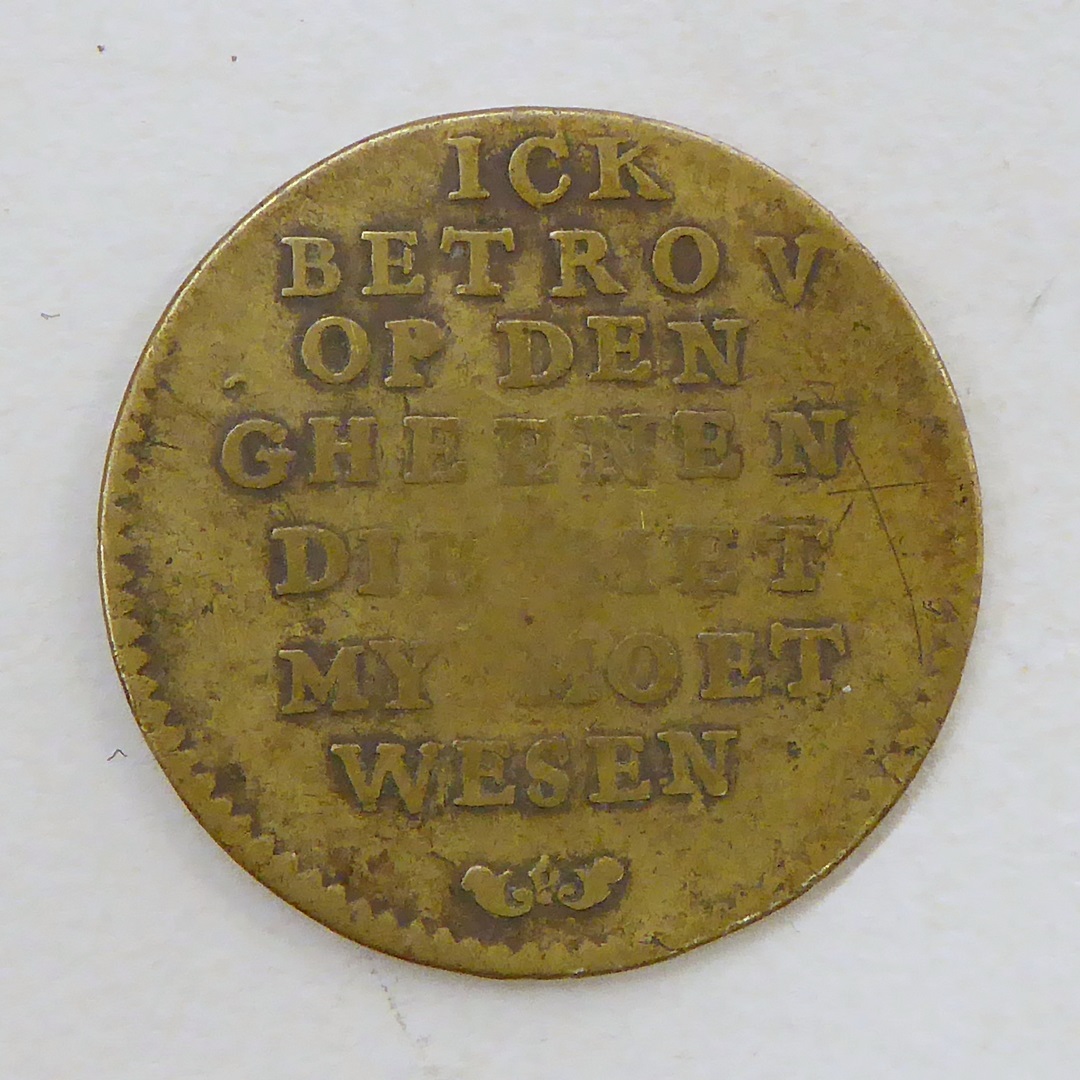 Vz.: DIE OP GODT BETROVT SYN GELVCK IS MENICHFAVT Kz.: ICK BETROV OP DEN GHEENEN DIE MET MY MOET WESEN