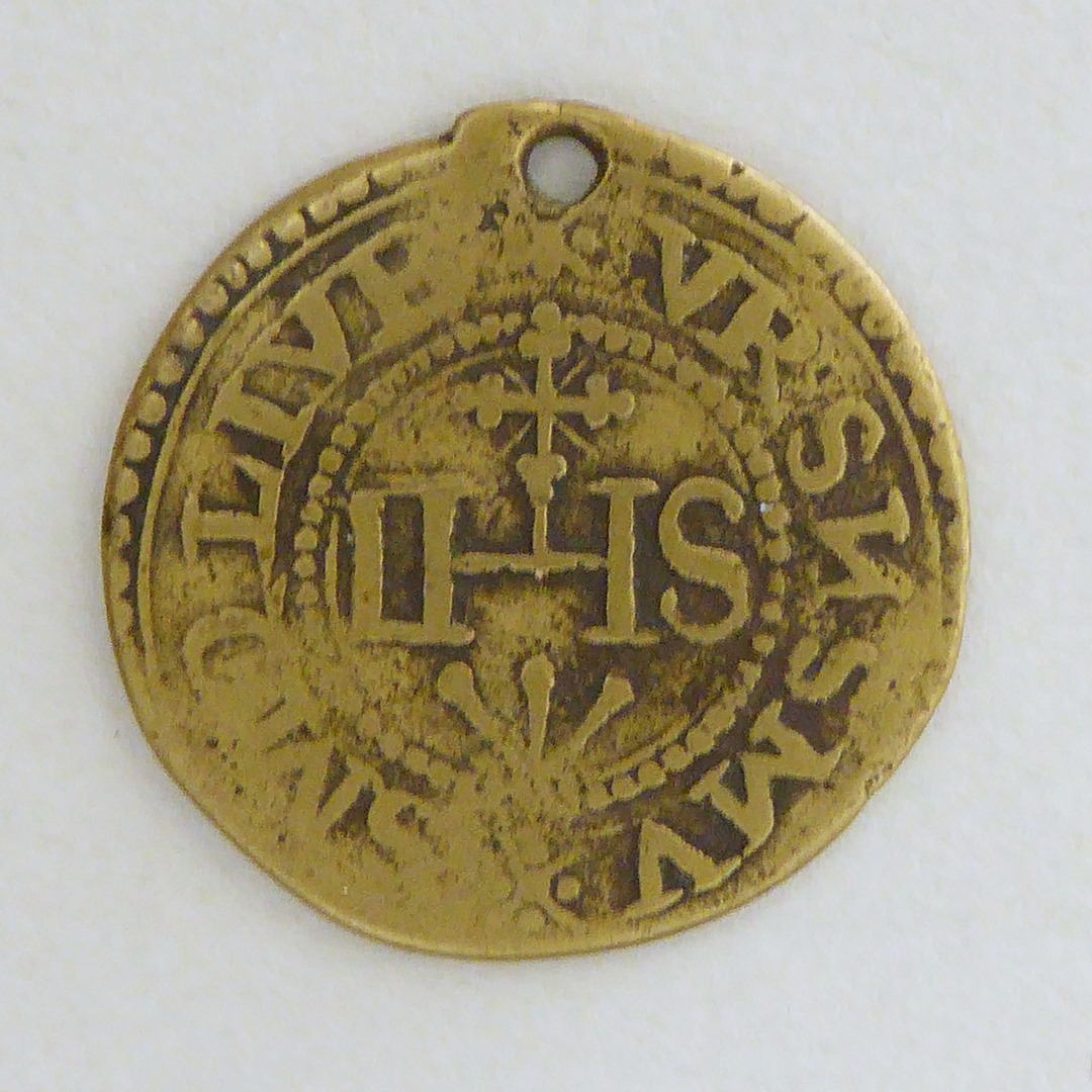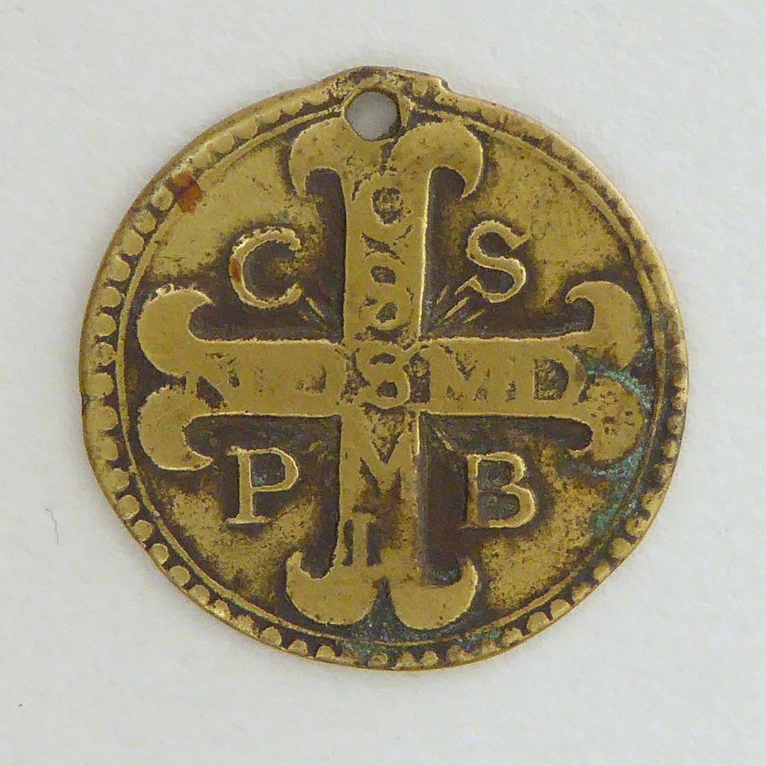 Penning met benedictuskruis en "C.S.P.B. ...", kz. Christusmonogram IHS