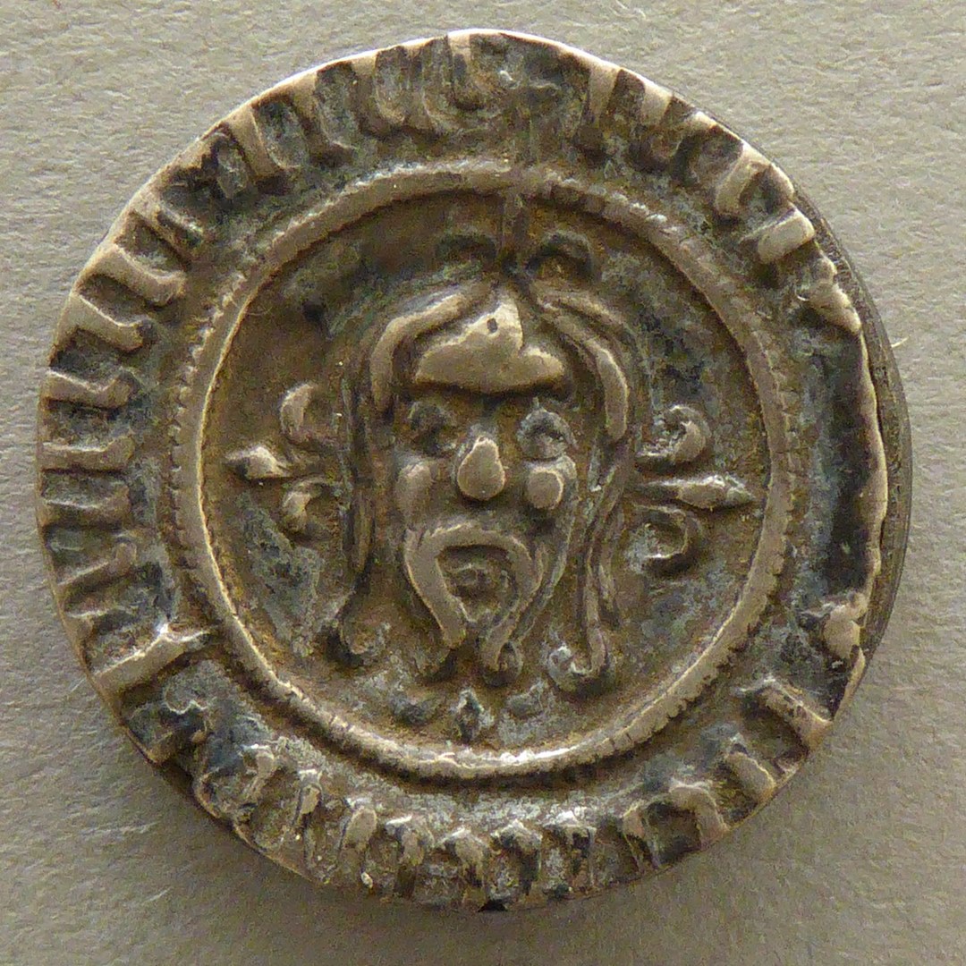 Schroefpenning met Christus' gelaat (Veronicadoek?), kz. Lam Gods (Agnus Dei)