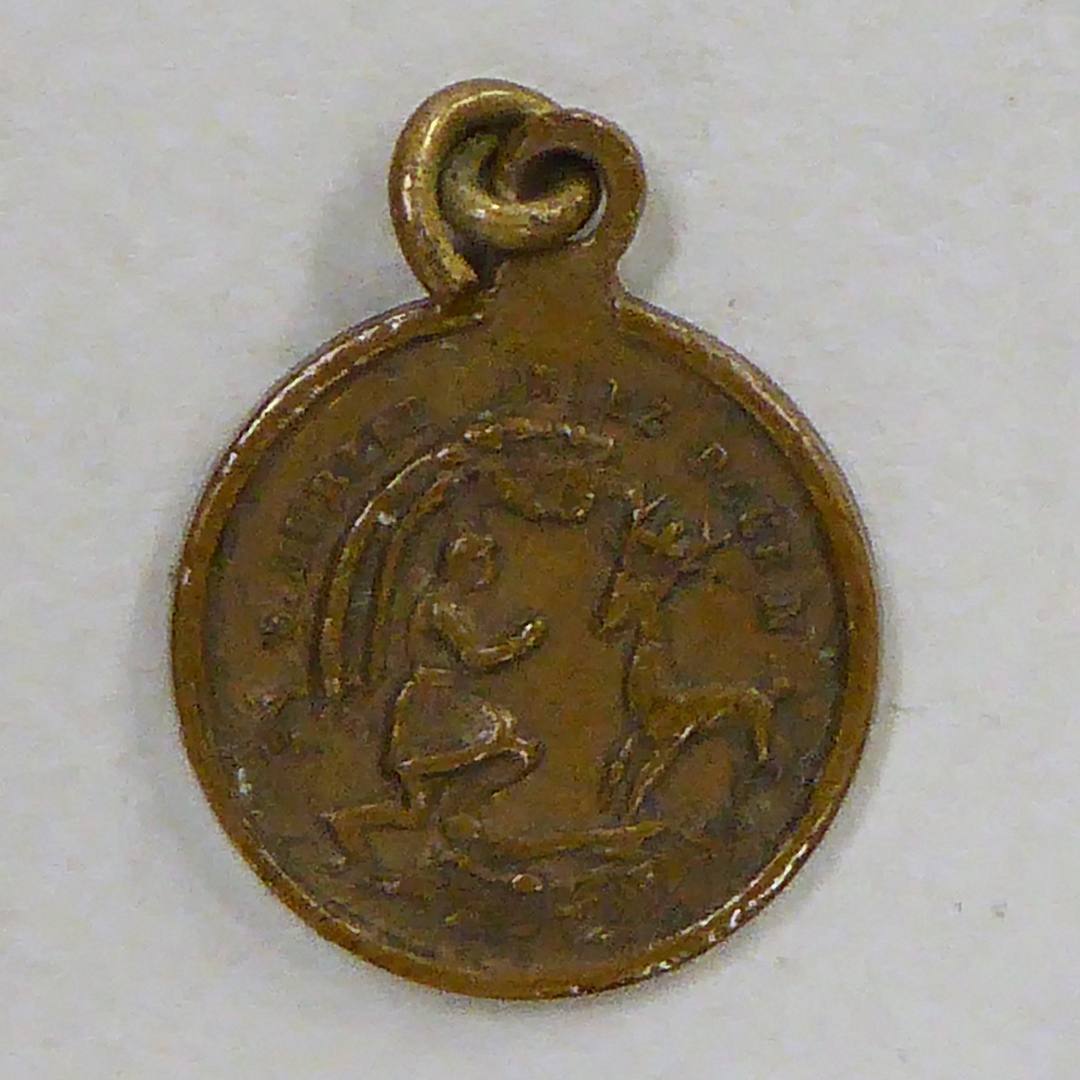 Devotiepenning St. Hubertus met "S Hubert priez pour n", kz. St. Rochus