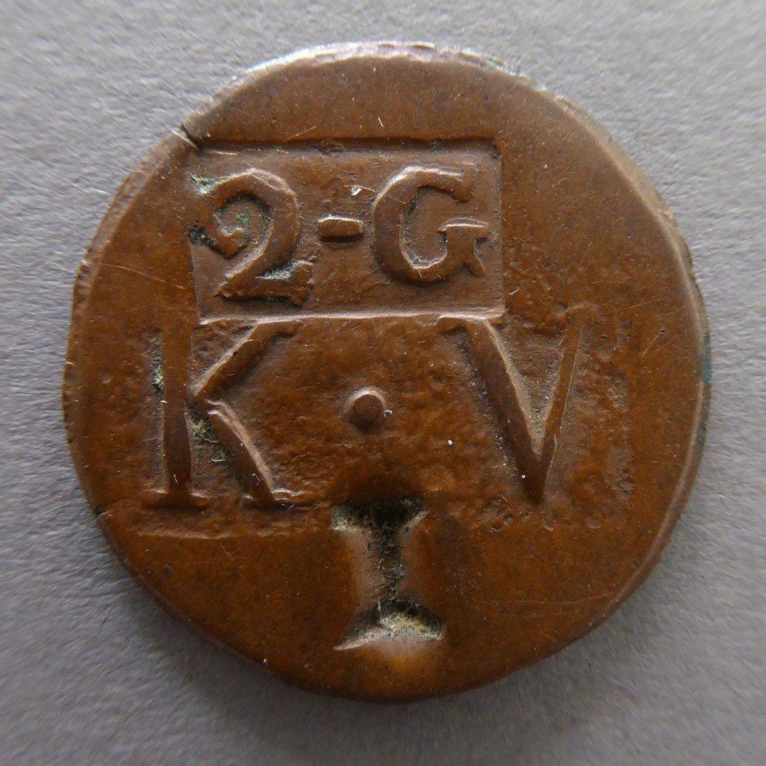 Penning met "2-G K.V. I", kz. blanco