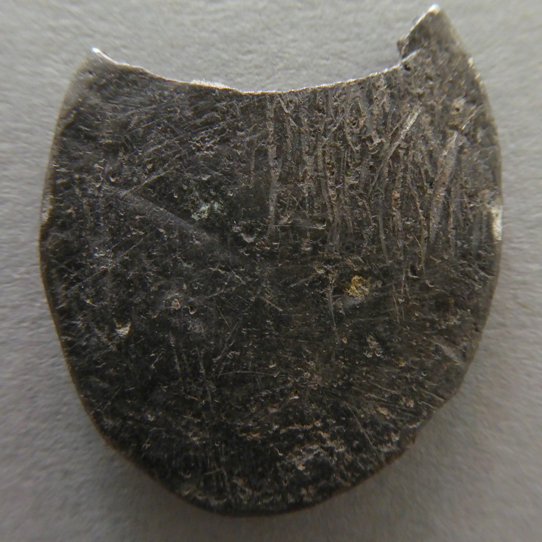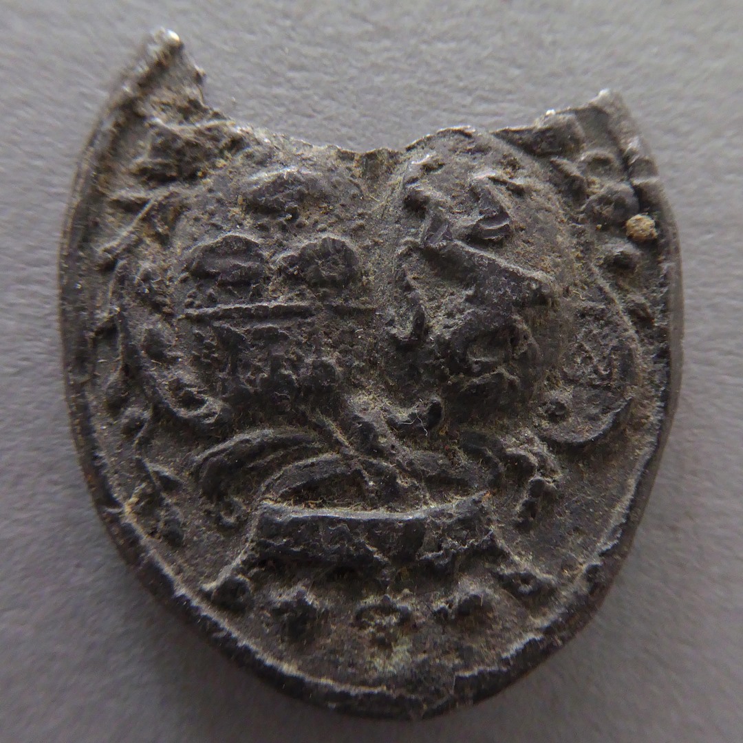 Penning, ovaal, gebroken, twee wapenschilden gedekt door kroon, kz. glad