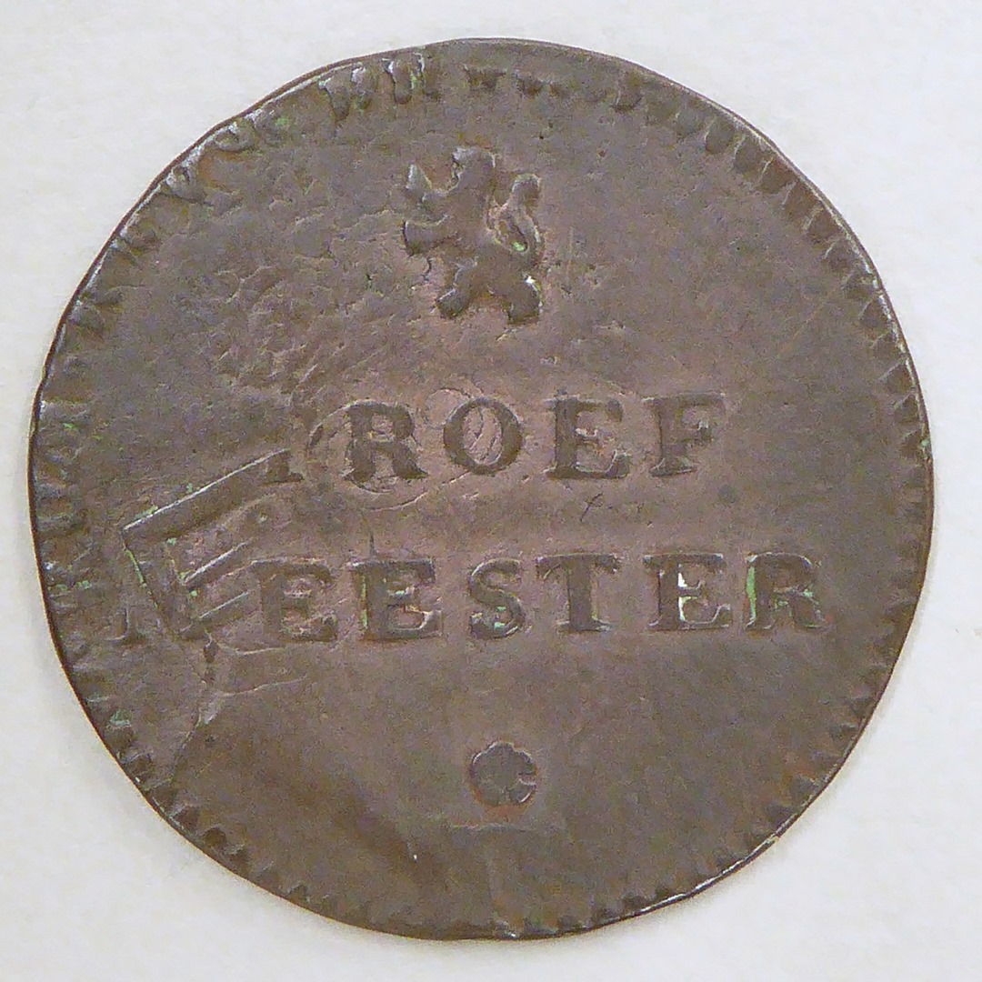 Penning met "Van d munten", kz. met "Roef meester" en leeuwtje