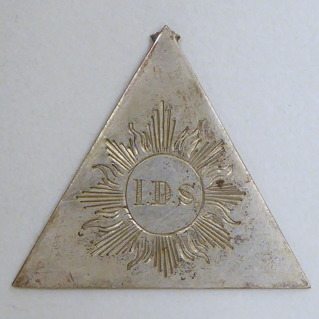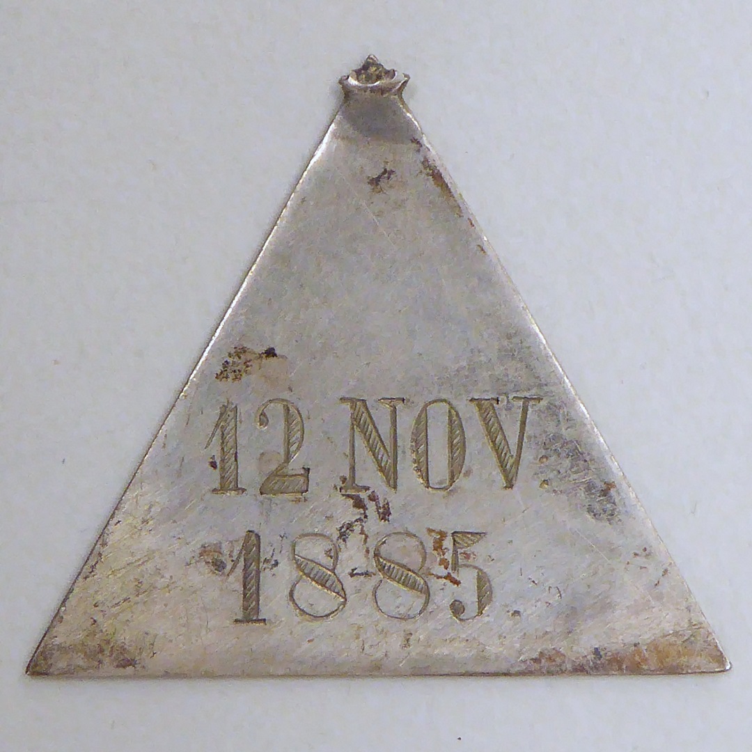Insigne, driehoekig, met "I.D.S." in stralenkrans, kz. met "12 nov 1885"