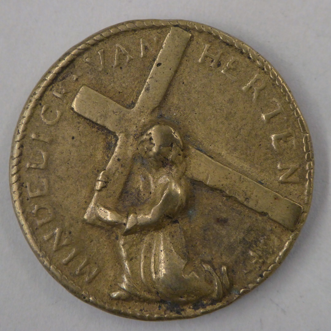 Penning met kruisdragende Jezus met "mindelick van herten", kz. Anna-te-Drieën
