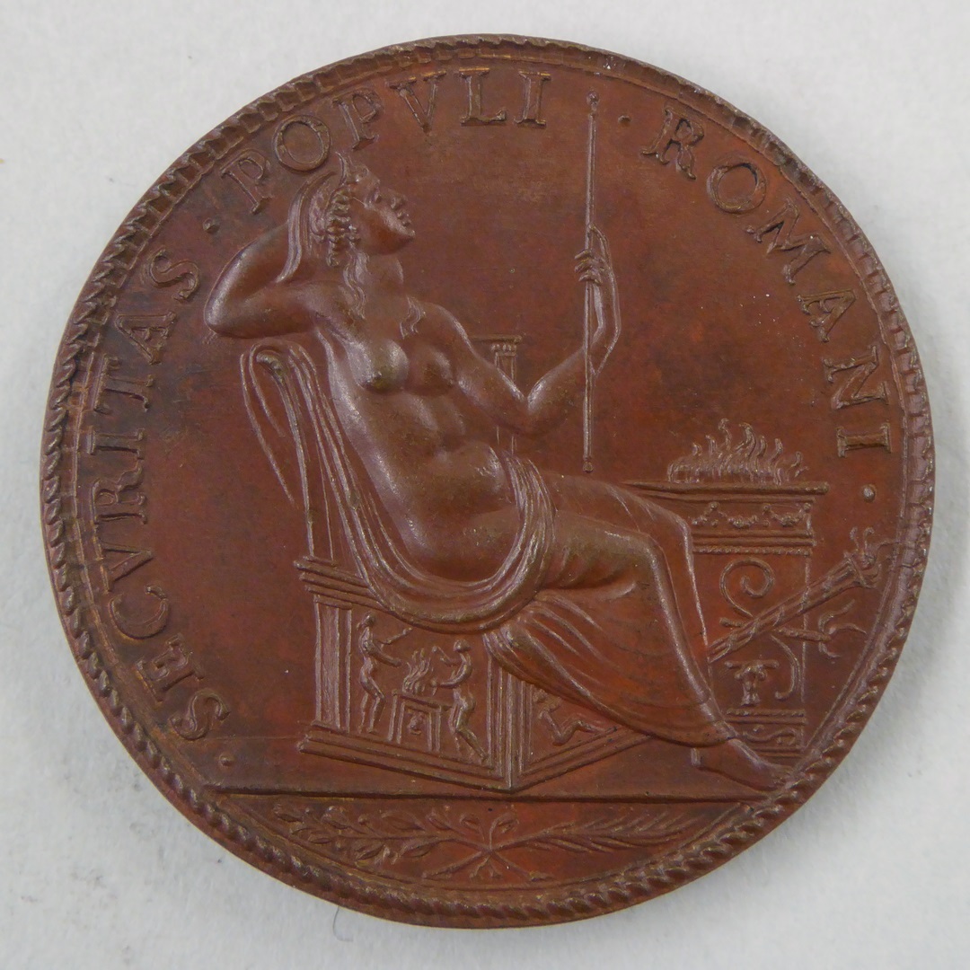 Pauspenning met portret paus Pius IV (1559-1565), kz. vrouw op zetel, met "Securitas populi Romani"
