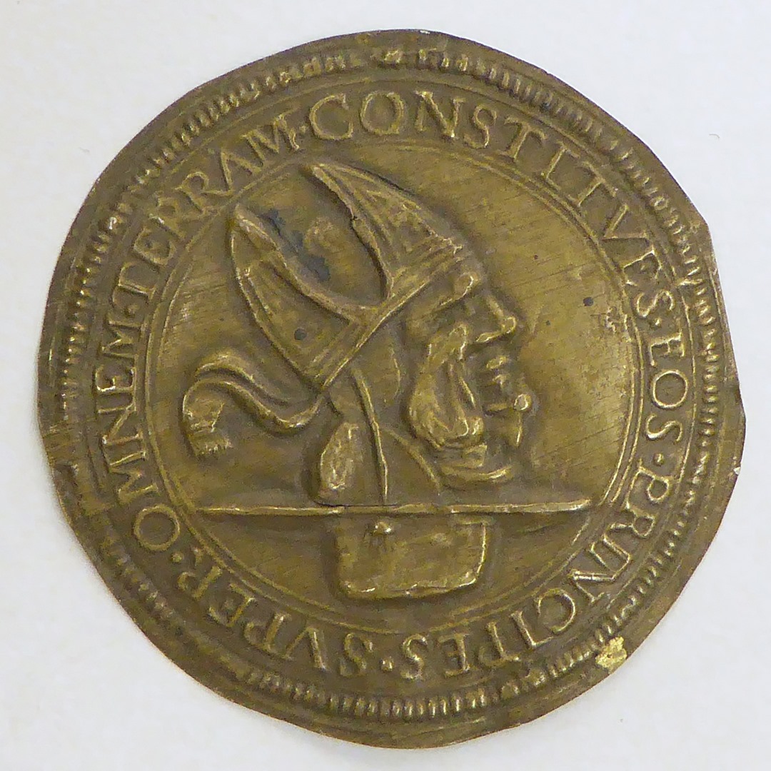 Penning, dubbelkop bisschop en kardinaal met "Constitues eos principes super omnem terram"