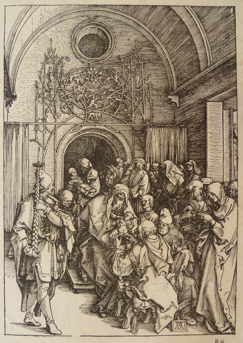 In een tempelruimte wordt het Christuskind besneden, in aanwezigheid van een groep mannen en vrouwen. Op versozijde gedrukte Latijnse tekst. Deze prent is onderdeel van een serie van 20 prenten, bestaand uit een titelprent en 19 prenten met scènes uit het leven van Maria.