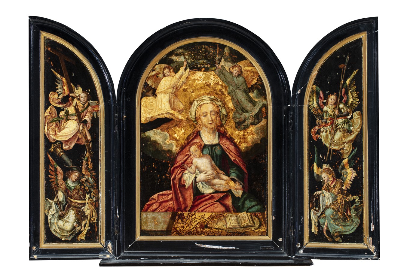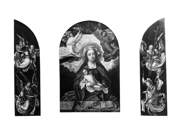 Drieluik met Maria en kind gekroond door engelen