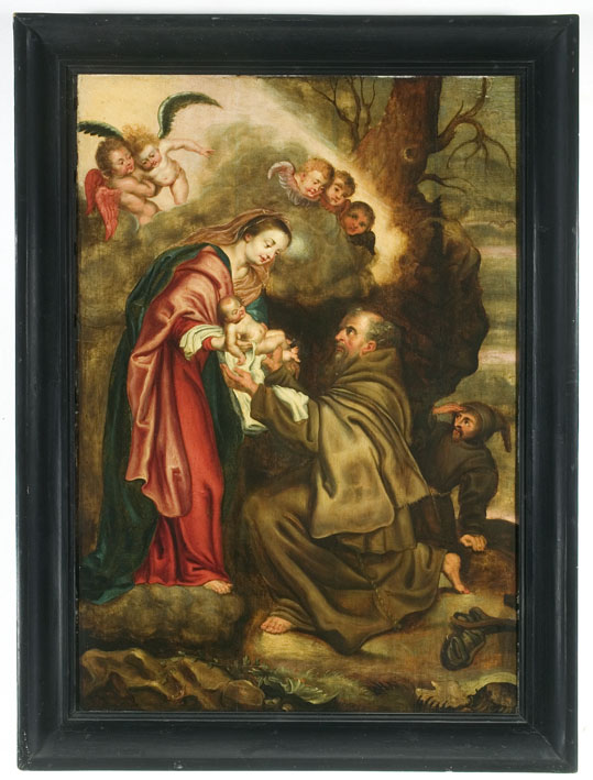 Franciscus van Assisi ontvangt het Christuskind uit handen van Maria