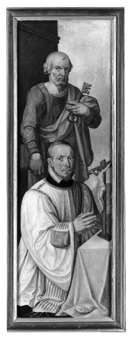 De thans lege kast (ABM s476, afm. 155,5 x 106,5 x 29,5 cm) draagt het opschrift: O HOMO CVR PIGROS TIBI SPONDES NESTORIS ANNOS / VT LONGO VIVAS TEMPORE DISCE MORI. (O mens waarom beloof je aan jezelf luie jaren van Nestor; om lang te kunnen leven moet je leren sterven).