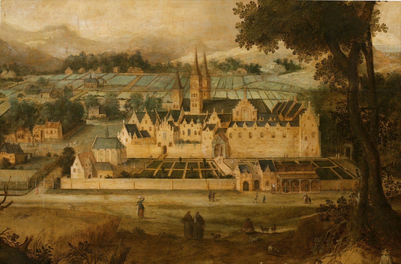 Gezicht op abdij en kasteel van Egmond