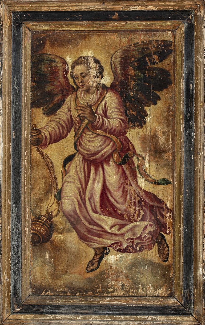 Rechterluik van een triptiek, voorzijde: wierokende engel, achterzijde: Paulus