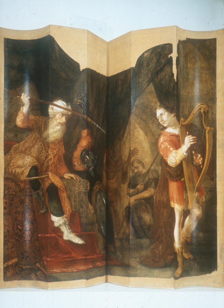 Rechterluik: Saul en David. Rechtsonder op het rechterluik de signatuur: D.Colijns. (vóór de restauratie van 1976/1977 was hiervan alleen het fragment lijn leesbaar)