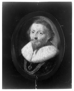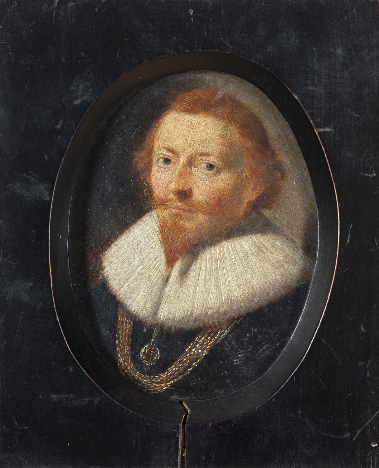 Op de hanger aan het lichtblauwe lint om zijn hals de hoofdletter H omringd door een bladerkrans.