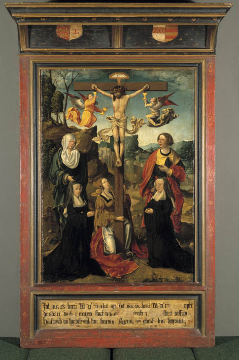 Memorietafel met Kruisiging en stichtsters Hadewych van Hardenbroek (links) en Agnes van Ghent (rechts)