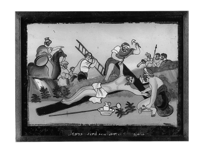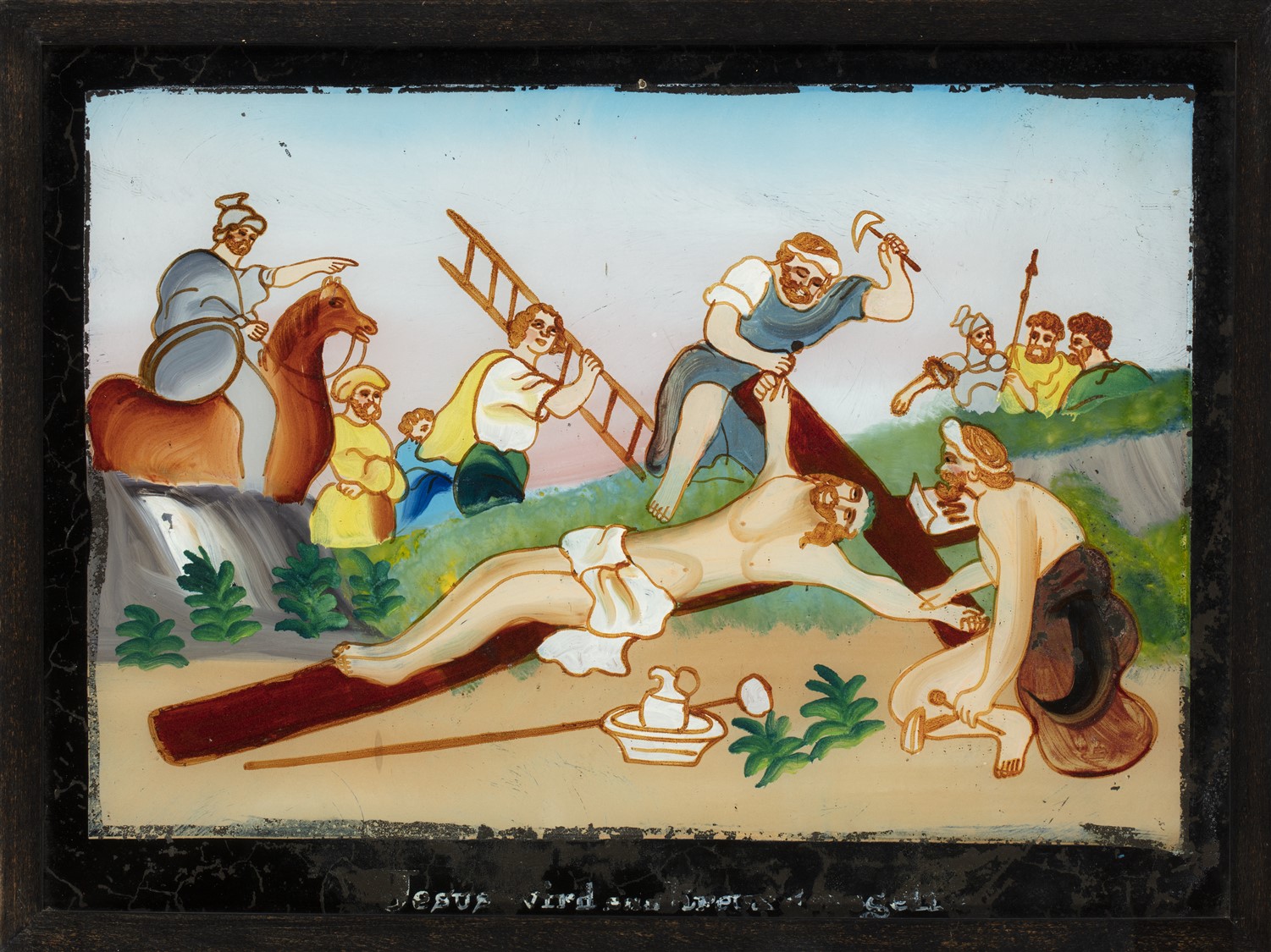 Onderschrift: Jesus wird ans Kreuz [gena]gelt (ABM s236)