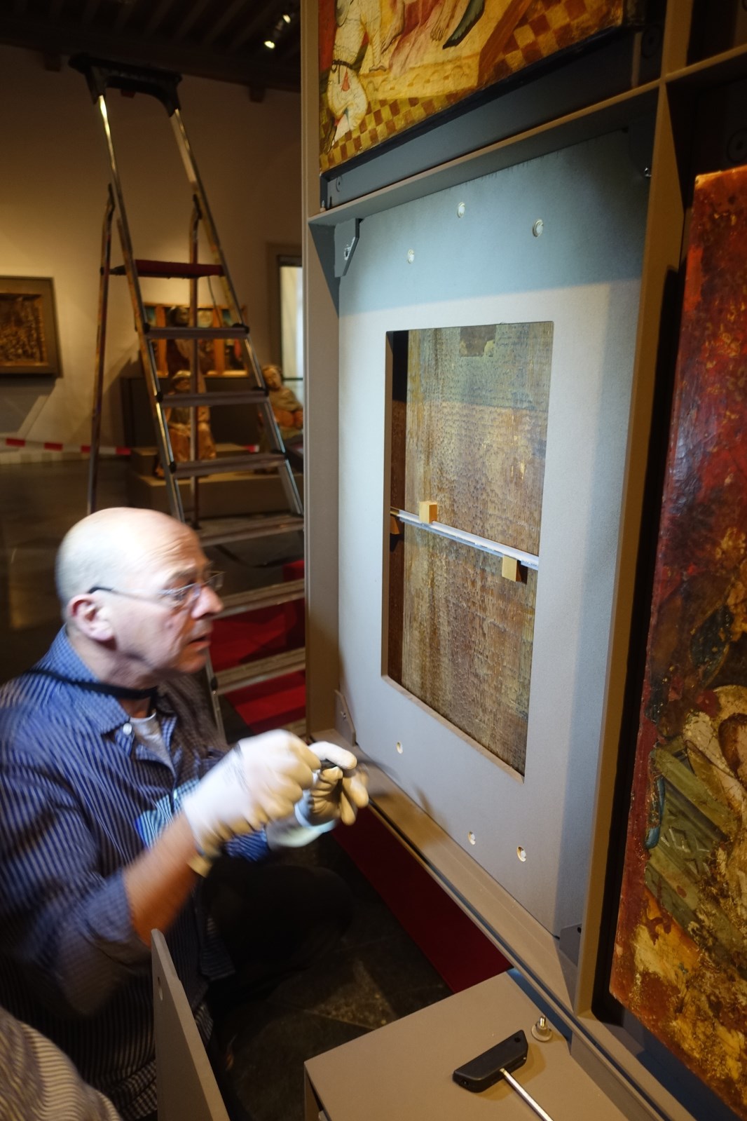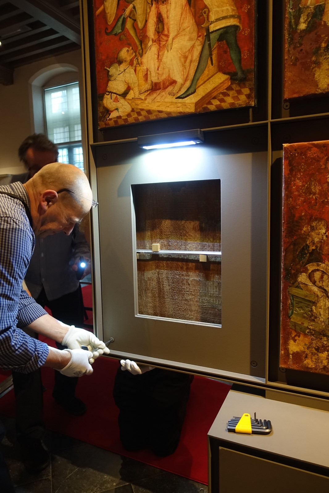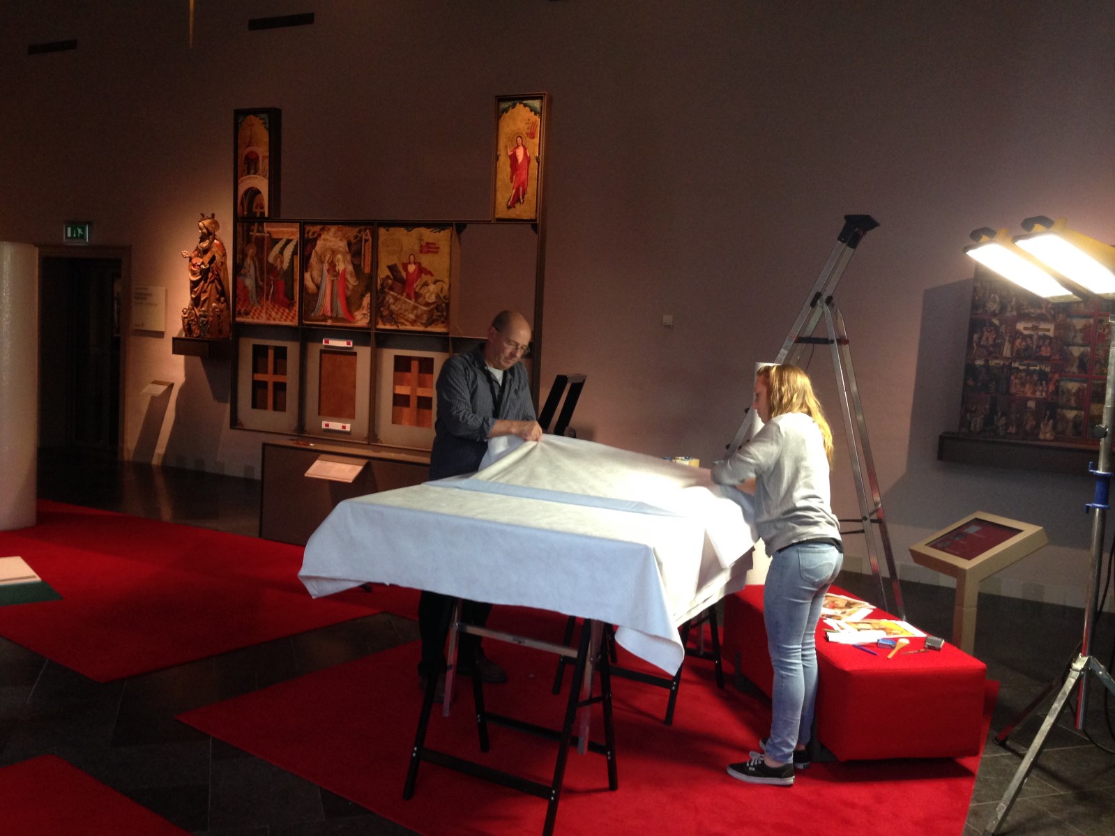 Op de spreukband van de engel: Ave gratia plena d[omi]n[u]s tecum (Gegroet begenadigde, de Heer is met u, Luc. 1:28). Op de spreukband bij Maria: Ecce ancilla d[omi]ni fiat michi s[e]c[un]d[u]m verbu[m] t[uu]m (Zie de dienstmaagd van de Heer, mij geschiede naar uw woord, Luc. 1:38).