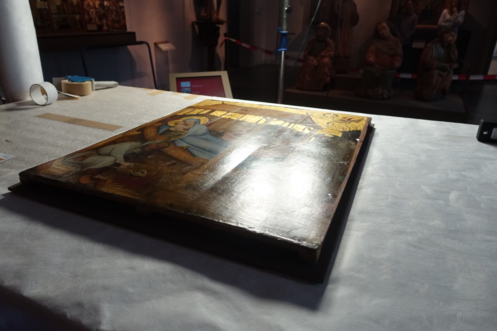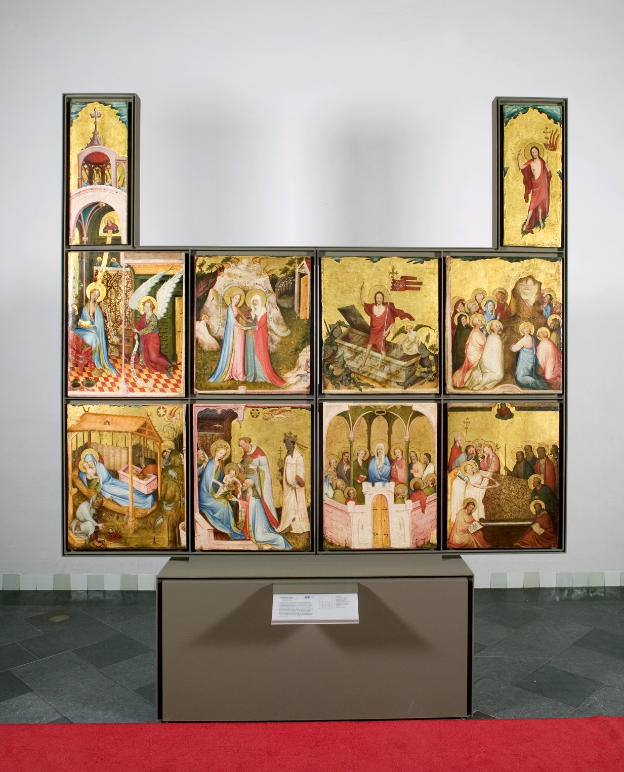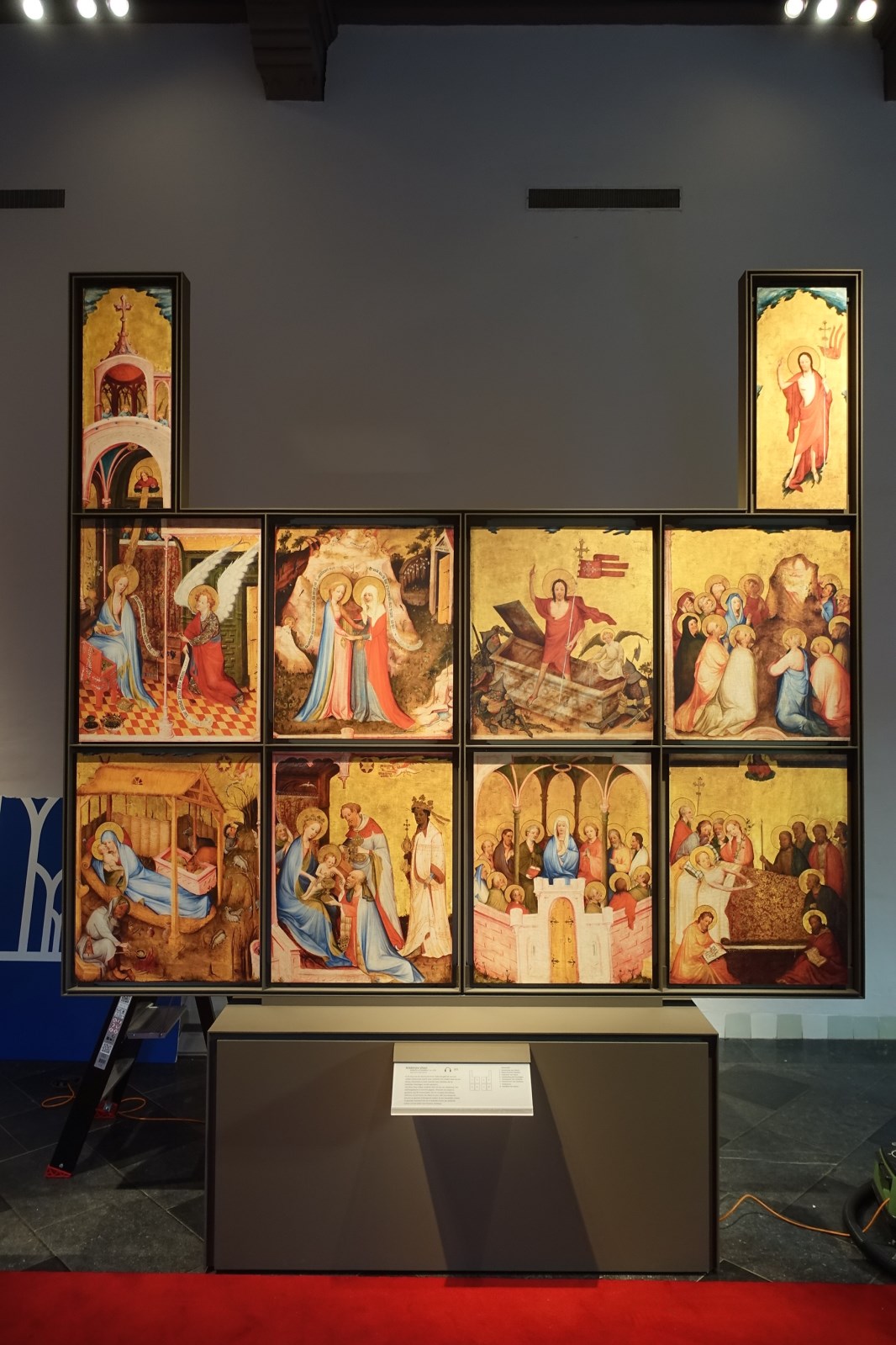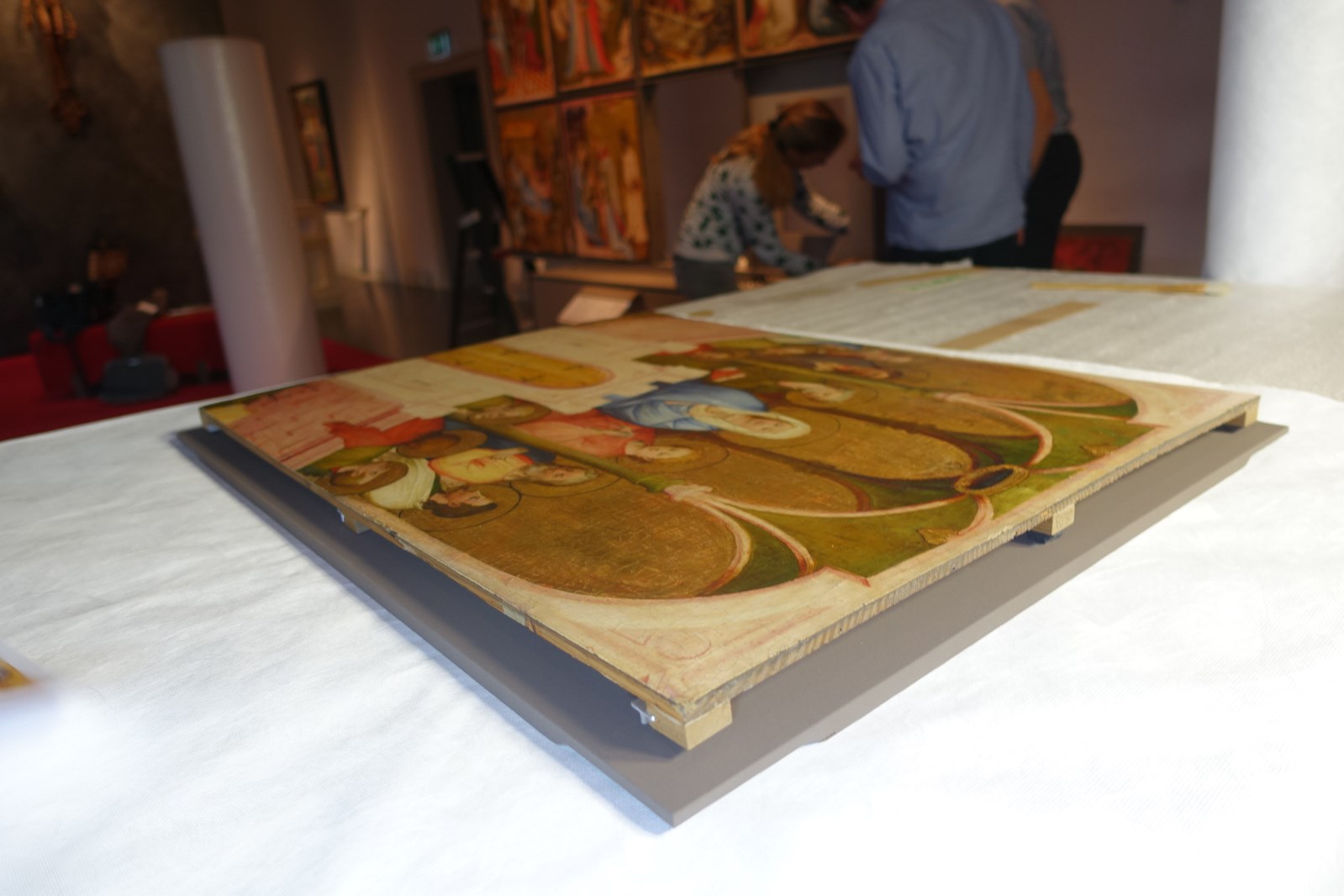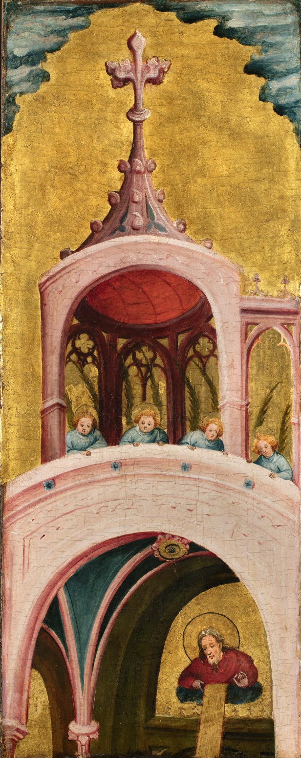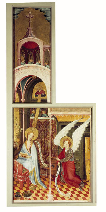Middelrijns altaar, annunciatie met afzonderlijk bovenstuk waarop God de Vader en vier engelen