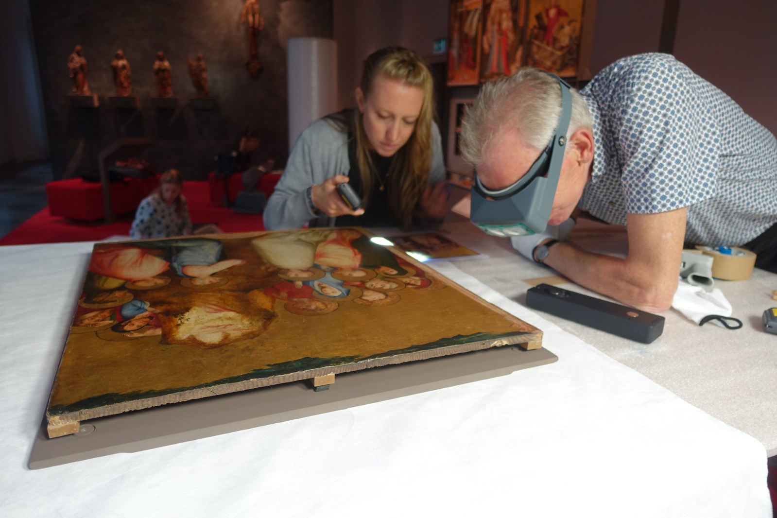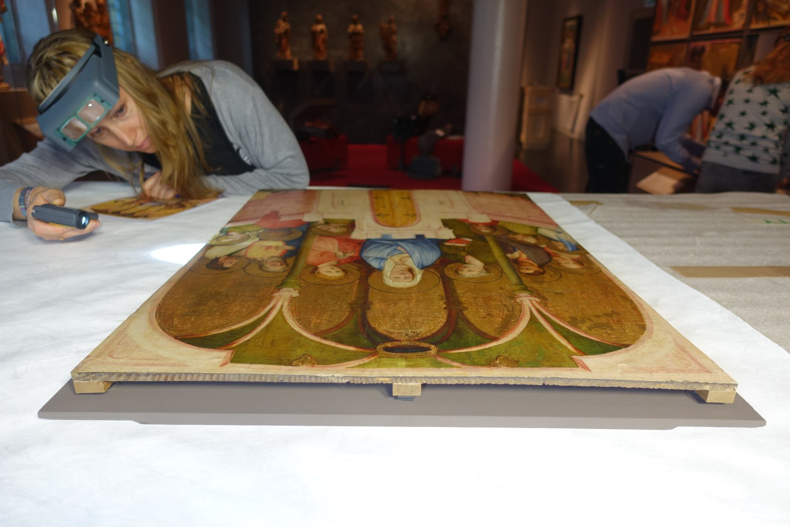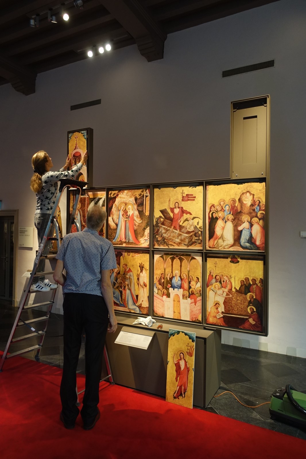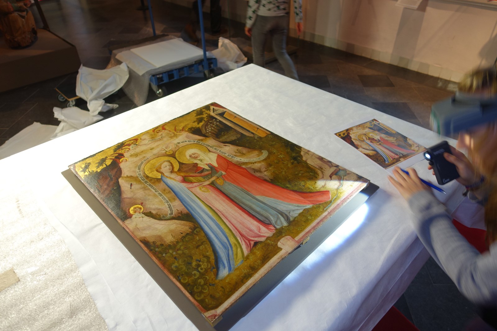 Middelrijns altaar, annunciatie met afzonderlijk bovenstuk waarop God de Vader en vier engelen