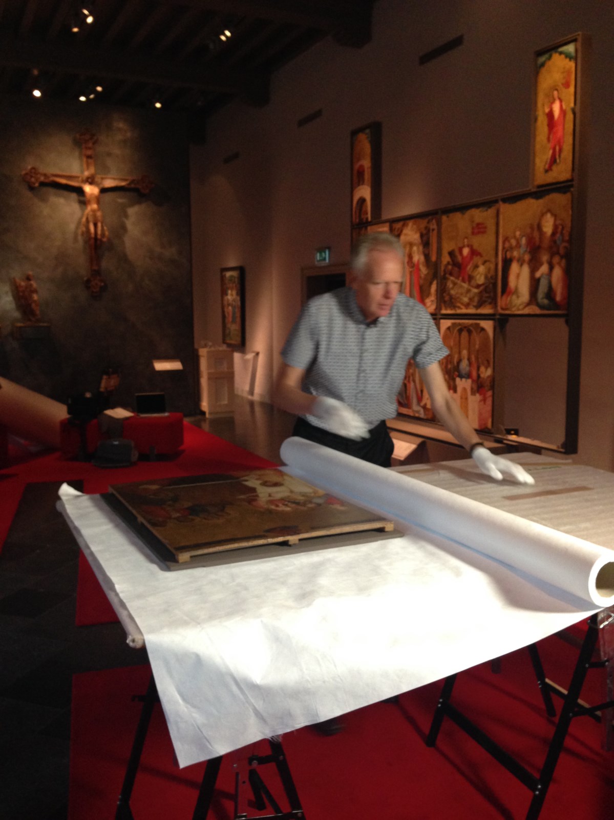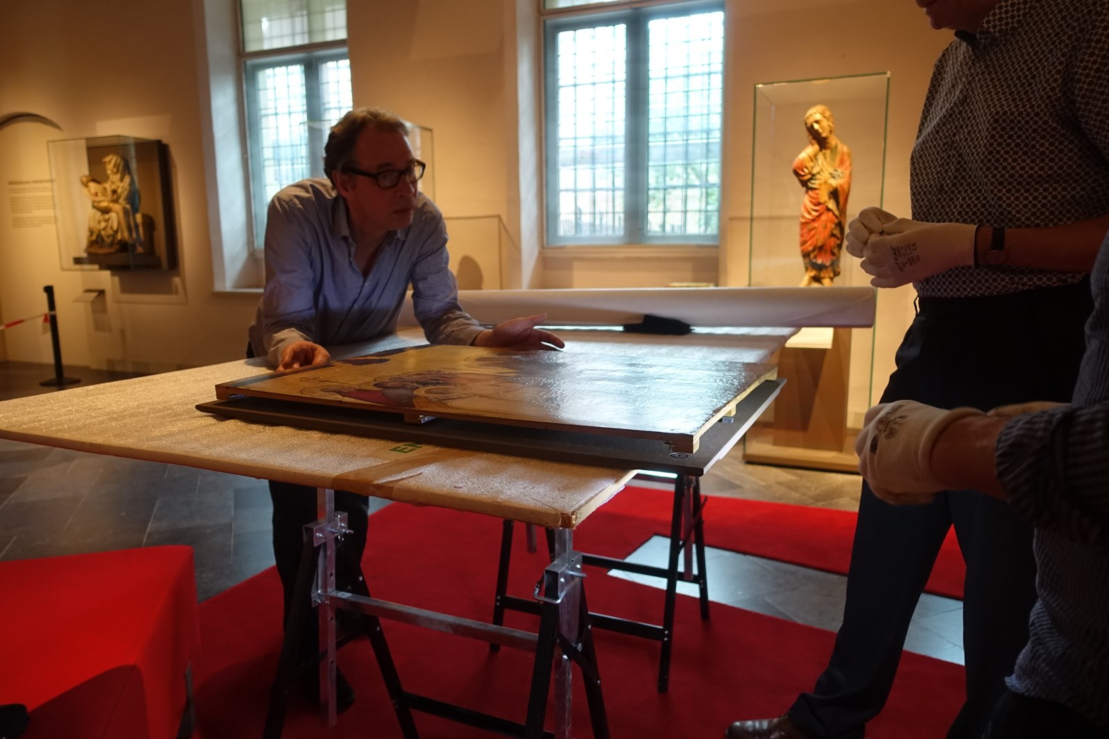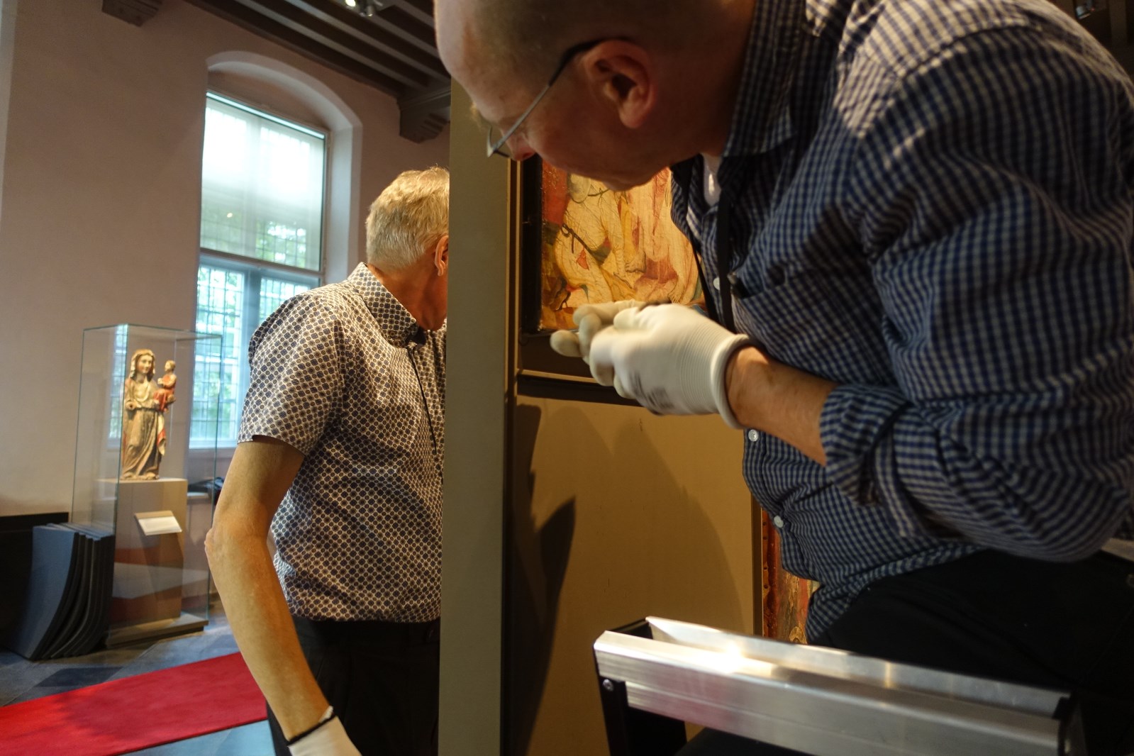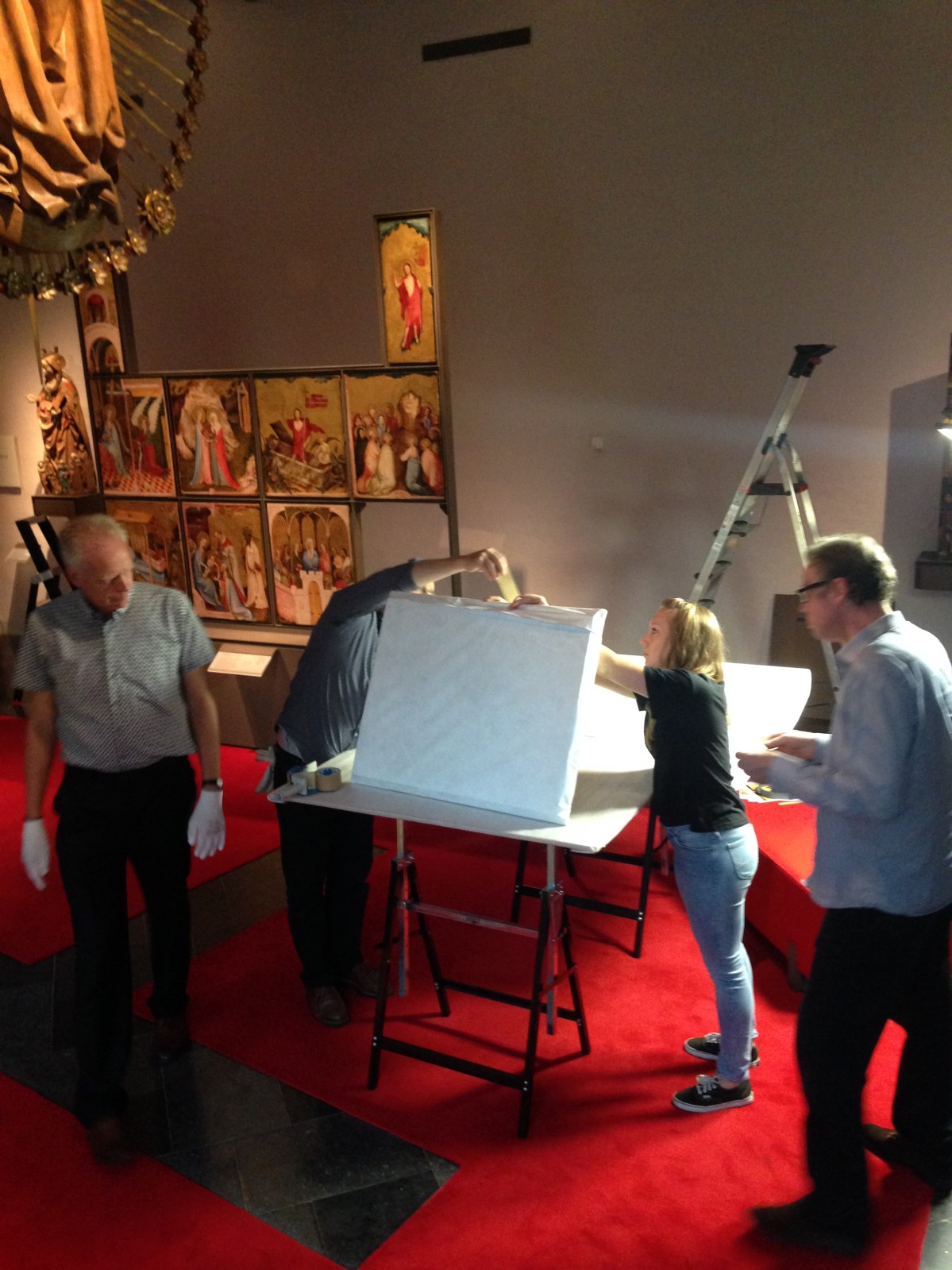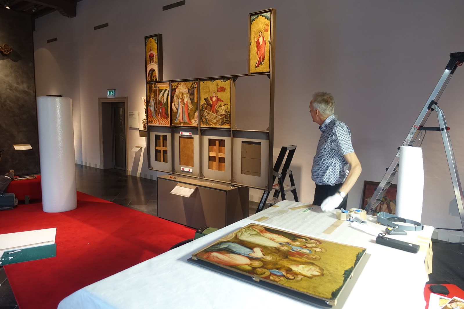 Middelrijns altaar, annunciatie met afzonderlijk bovenstuk waarop God de Vader en vier engelen