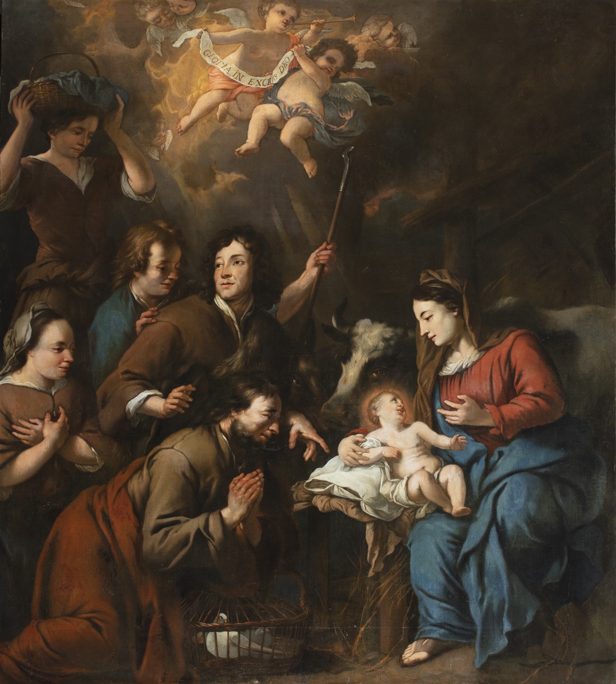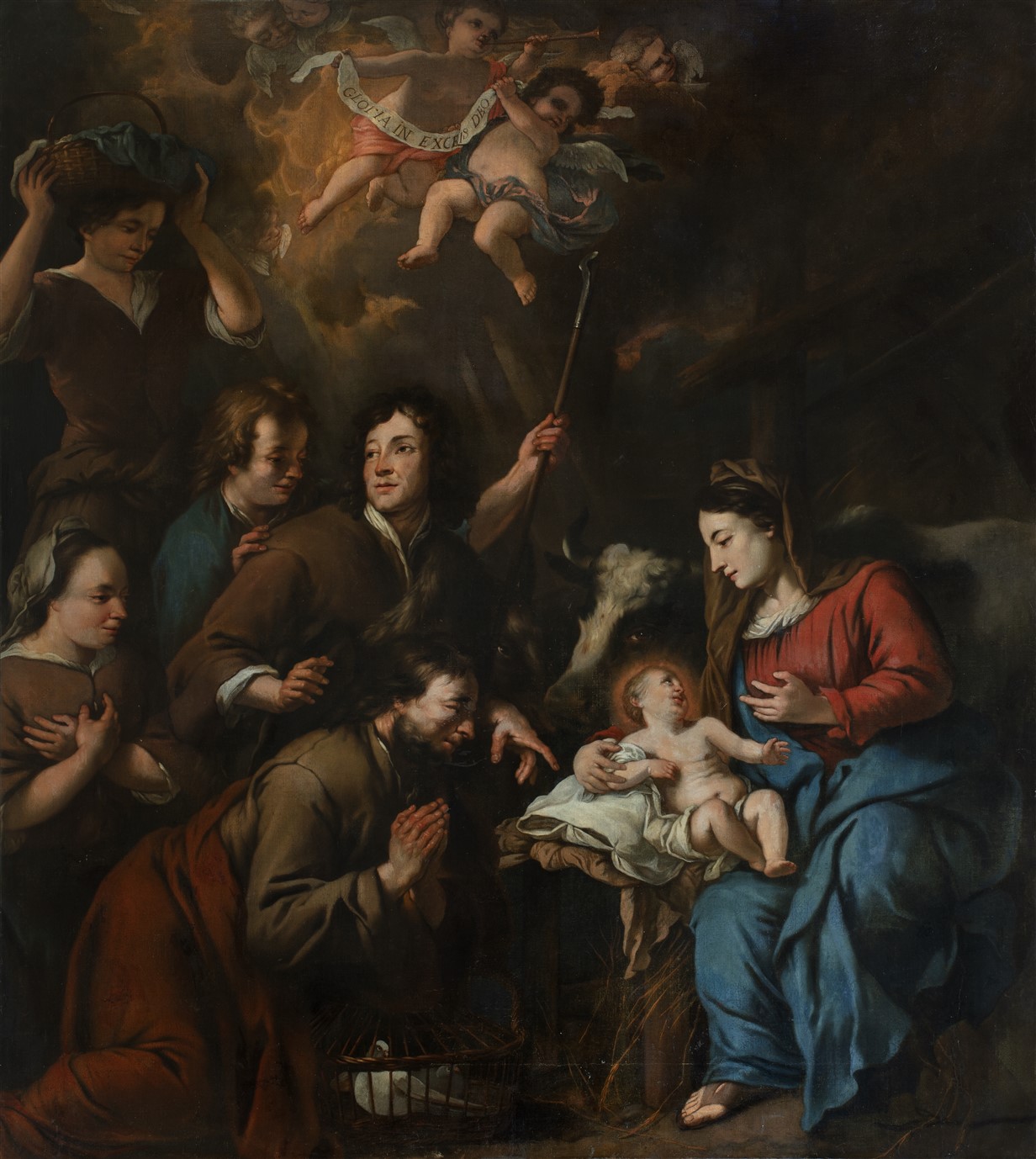 Op de banderol van de twee putti bovenaan: GLORIA IN EXCE[LC]IS DEO (Ere aan God in den hoge).