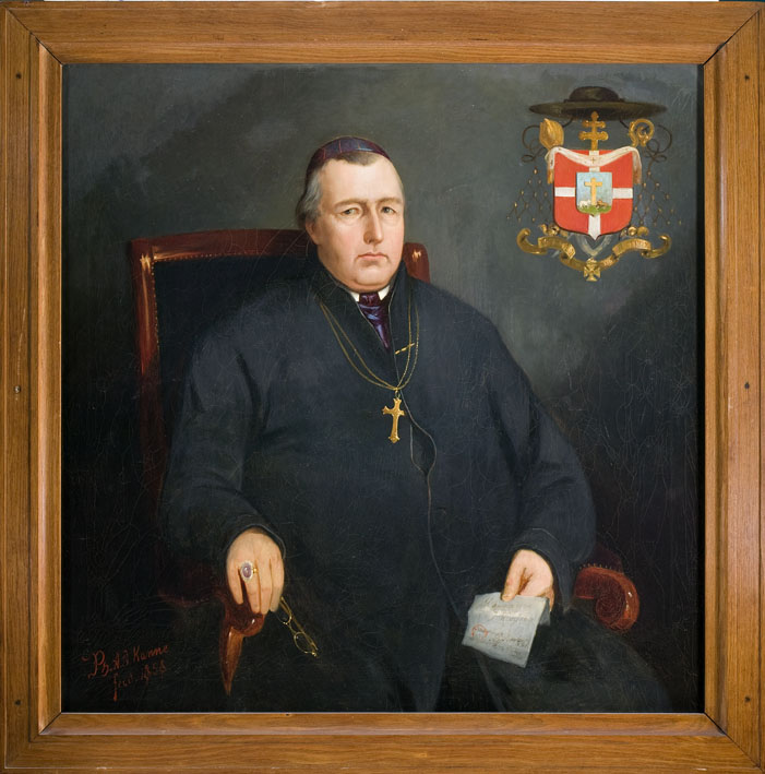 Gesigneerd en gedateerd linksonder: Ph.A.A.Kanne / fecit.1858. Op het briefje met zegel: Monseigneur / J. Zwijsen / Rijsenburg. Onder Zwijsens’ wapen het devies: MANSUETE ET FORTITER (Kalm en krachtig).