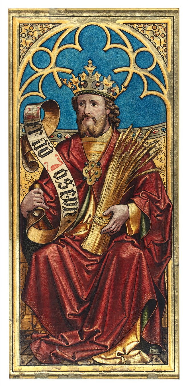 Voorgesteld is Jozef. Tekst op de banderol: Ite ad Joseph (Ga tot Jozef)