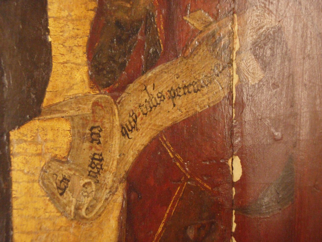 Tekst op banderol Johannes: Ecc[e] agn[us] [d]ey qui tolis pecca[ta] m[undi] (Zie het Lam Gods dat de zonden der wereld wegneemt).