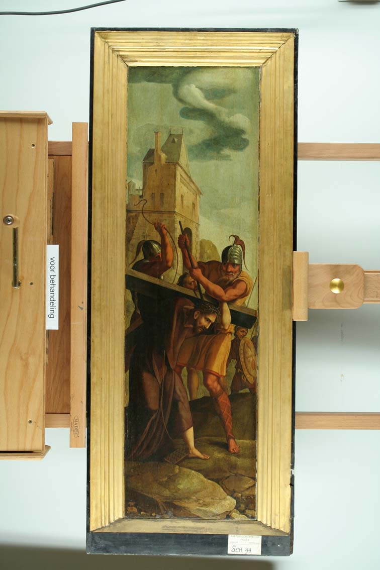 Linkerluik van een triptiek. Voorzijde: Kruisdraging. Achterzijde: Portret van een man (stichter)
