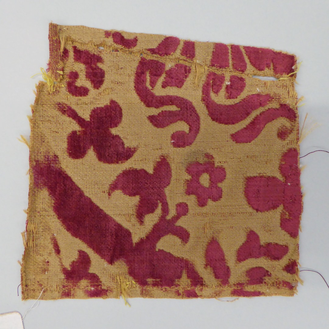 Oker fluweel met rood floraal motief
