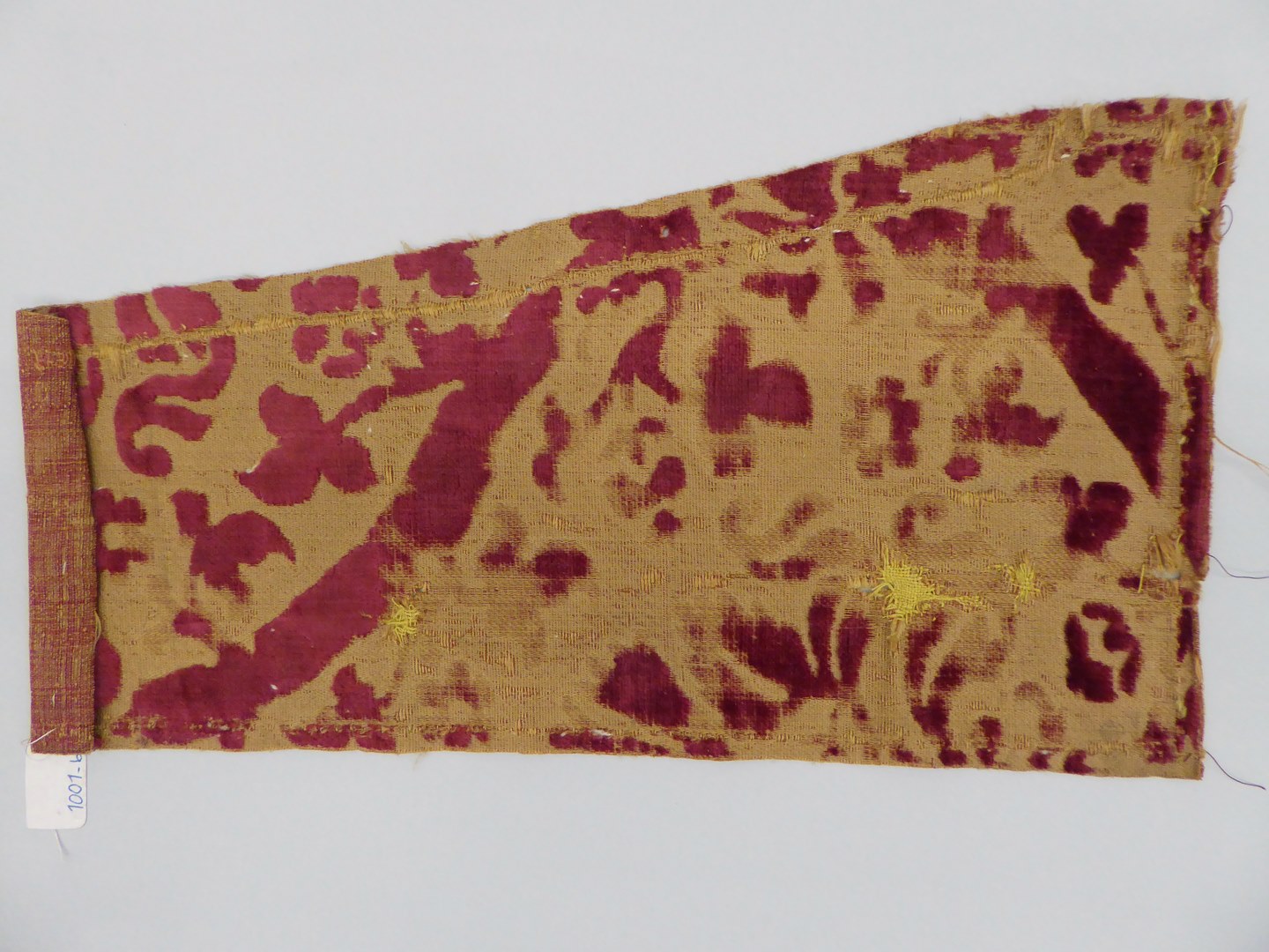 Oker fluweel met rood floraal motief