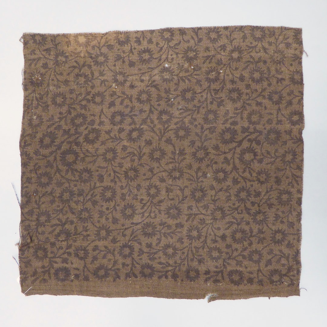 Bruin canvas weefsel bedrukt met slingerend bloemmotief