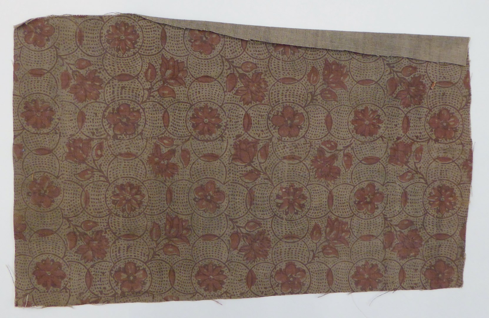 Crème canvas weefsel met bloemmotief bedrukt
