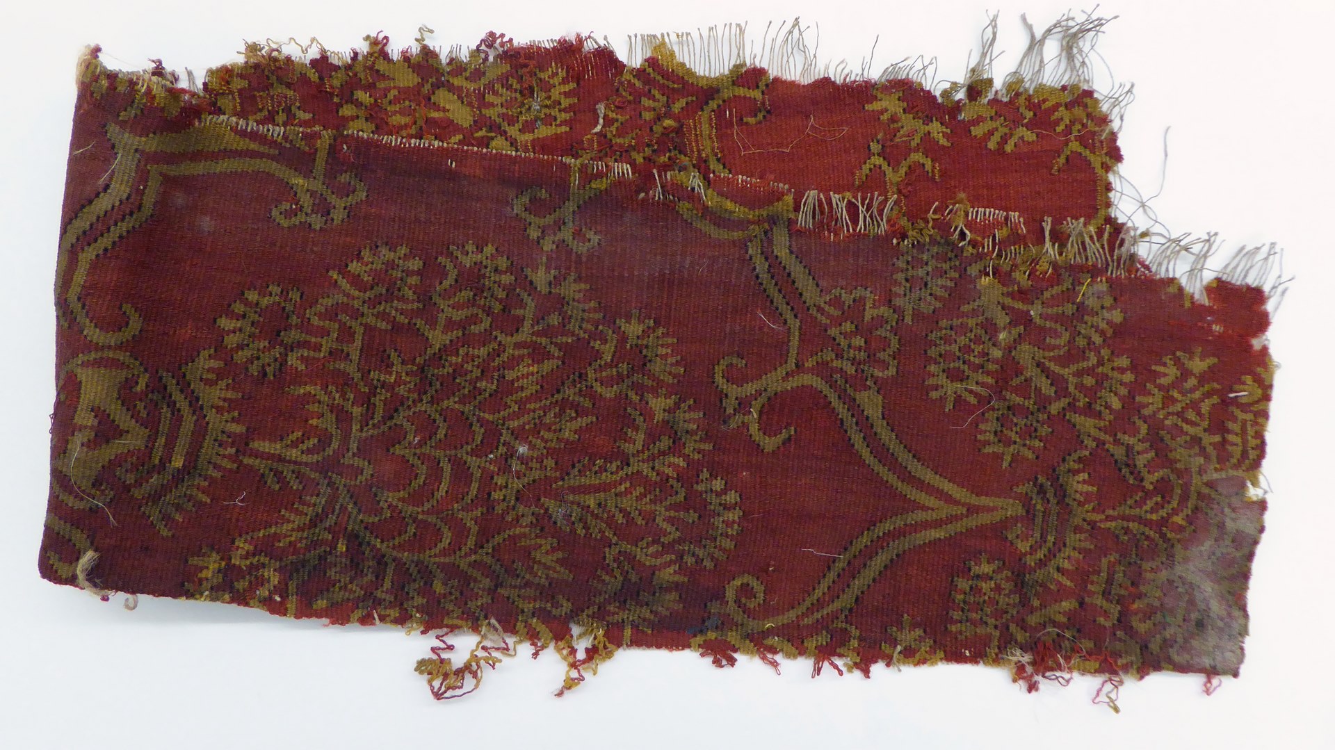 Rood tapisserieweefsel met granaatappelpatroon, met authentieke spijker uit Italië