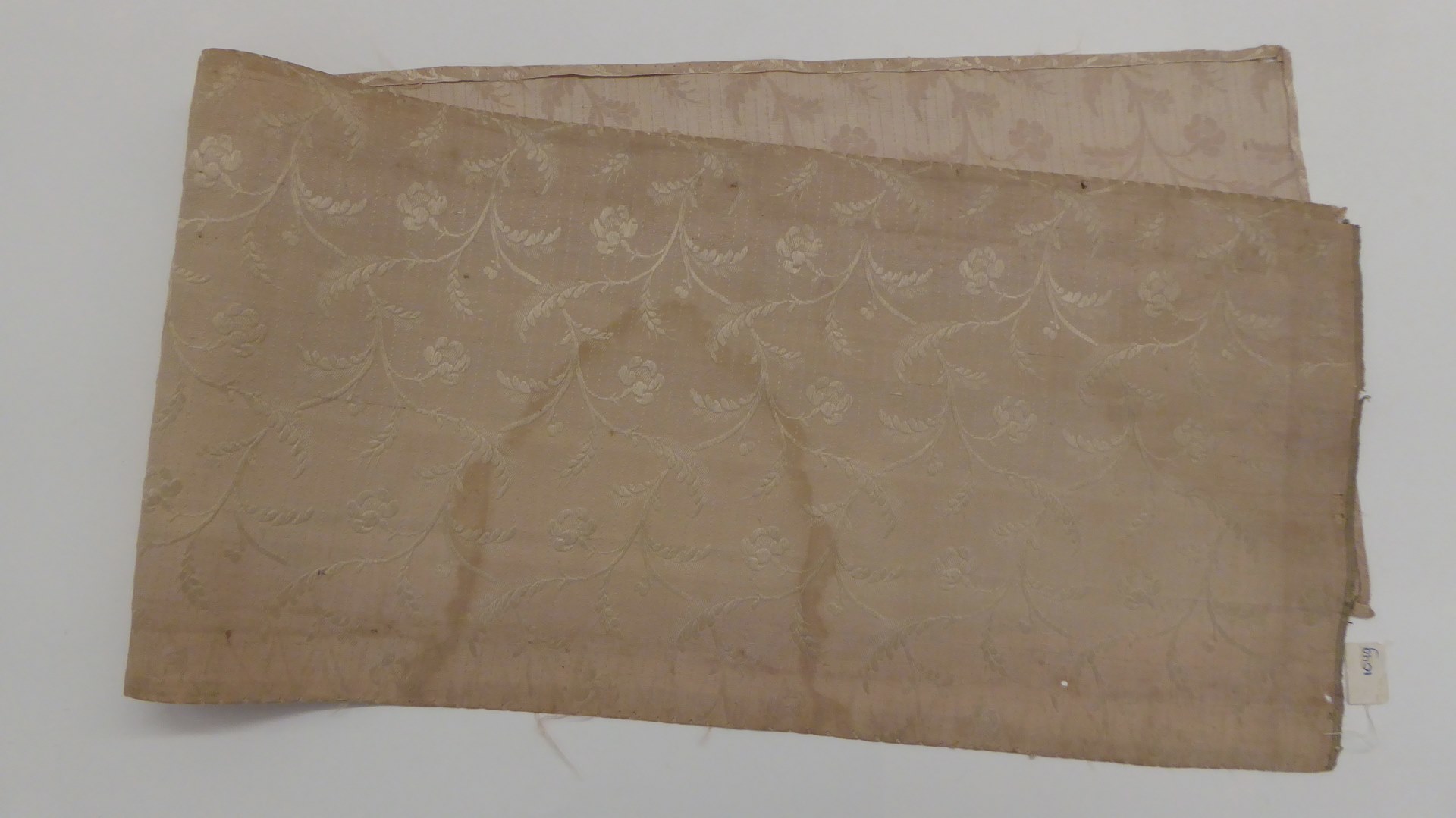 Bleekroze gestreept zijdeweefsel met golvende bloemtakjes