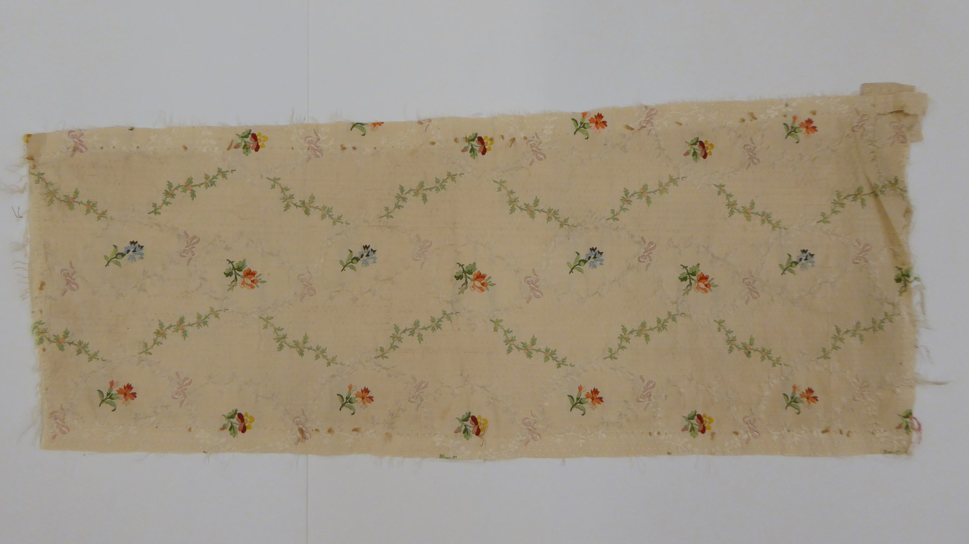 Witte gros de Tours met blad- en bloemranken