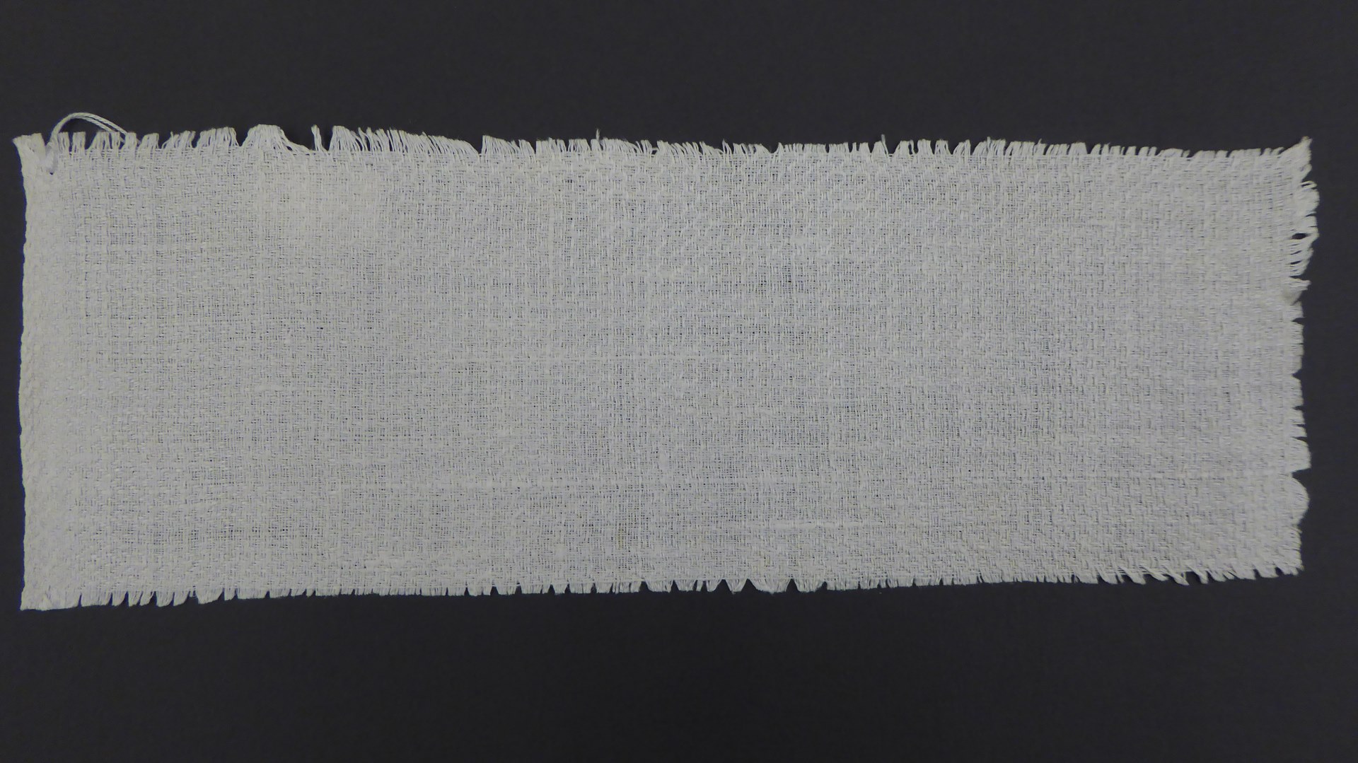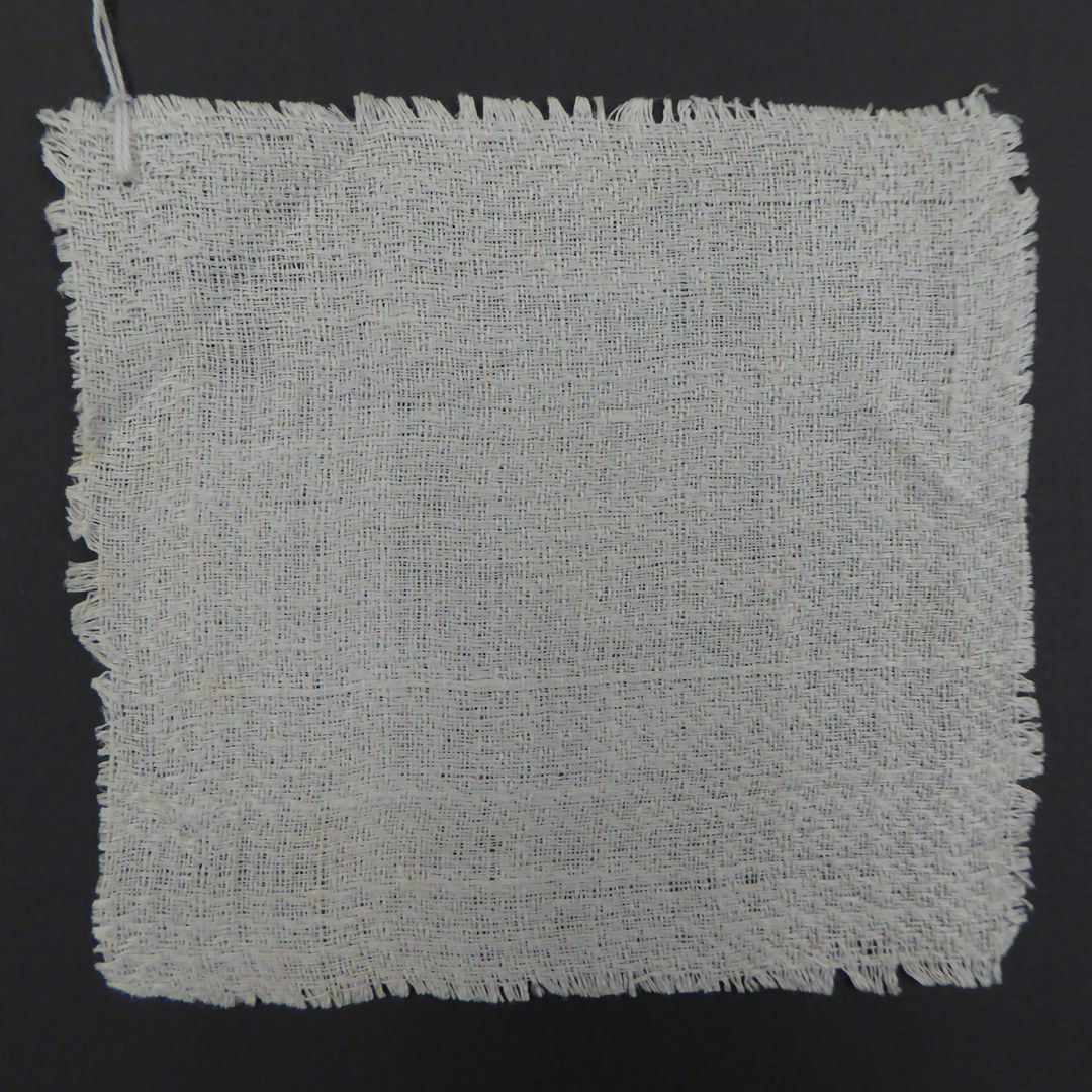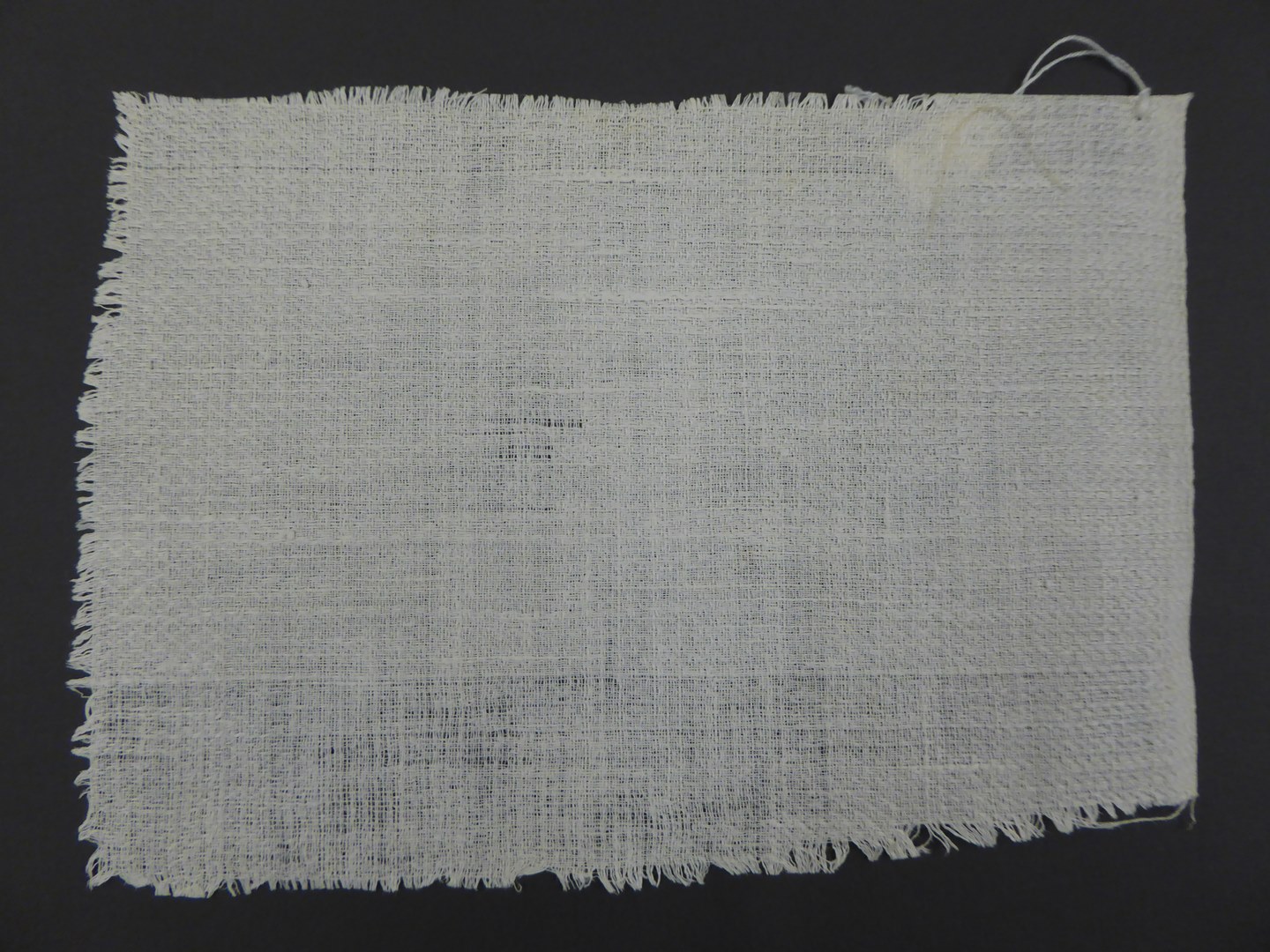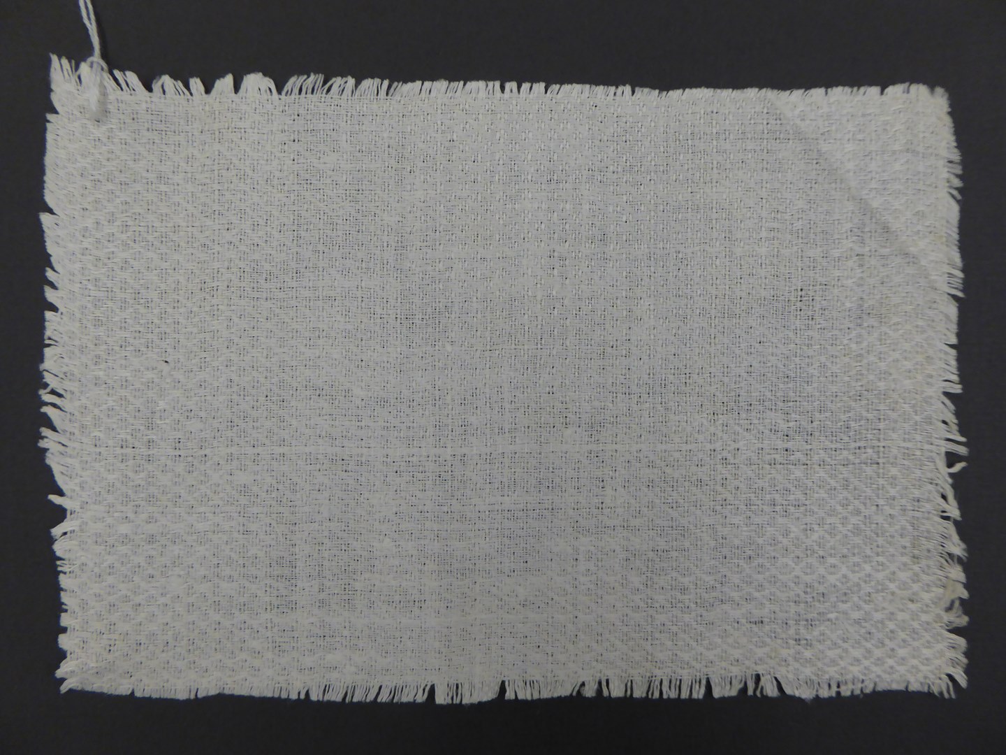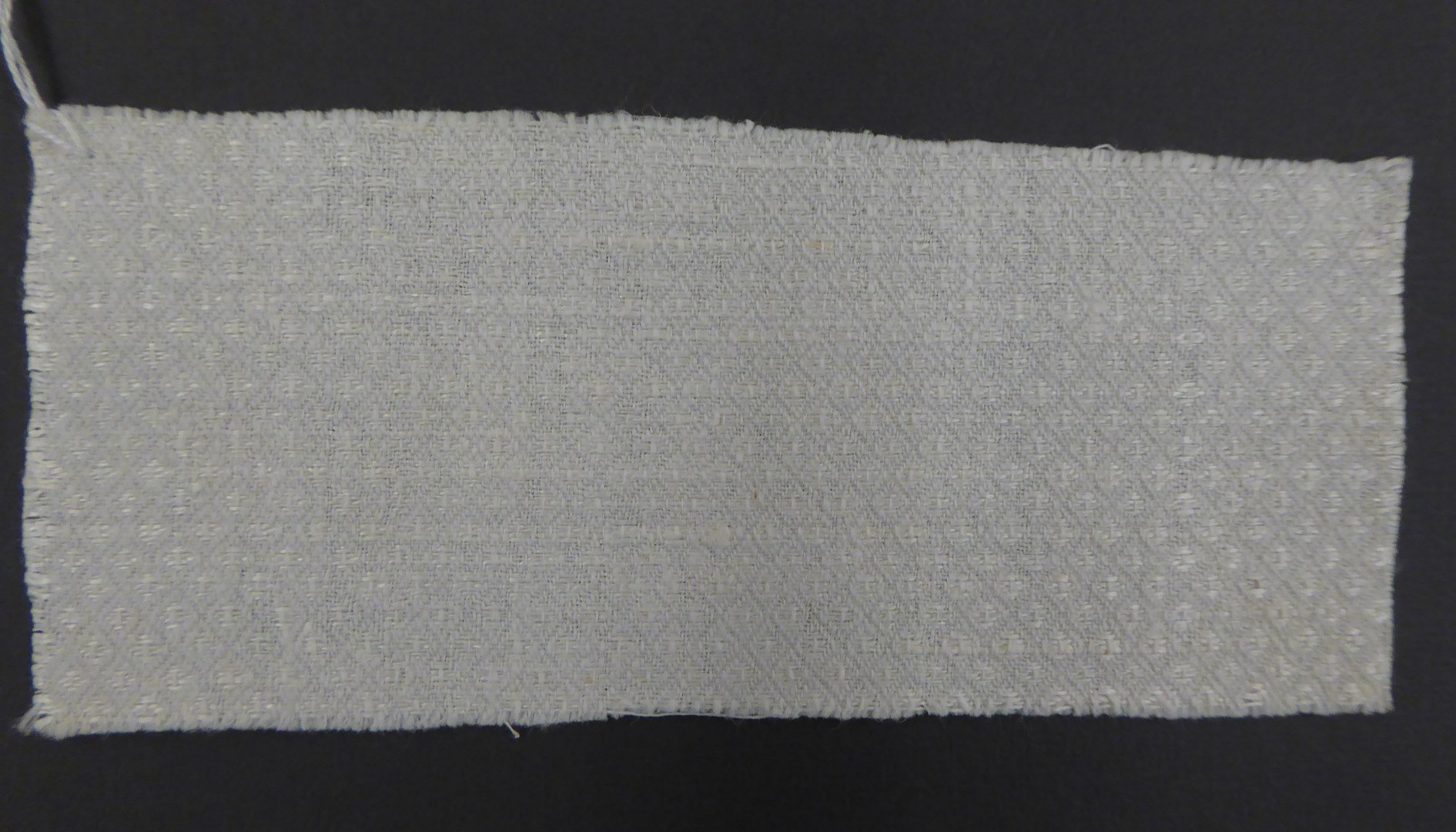 Fragment witte damast (7 fragmenten) in oogjespatroon geweven, oogjes in plat