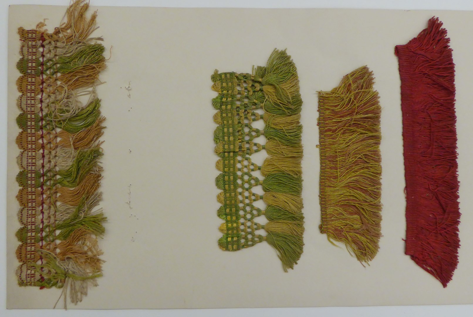 Vel karton met vier fragmenten franje (1 ontbreekt)